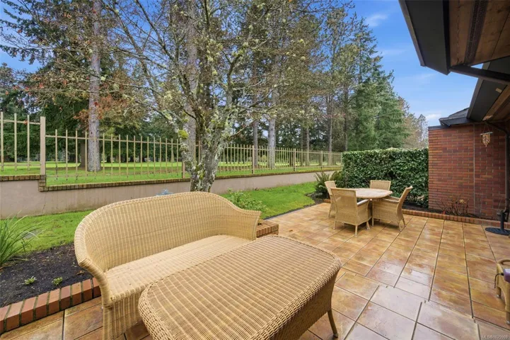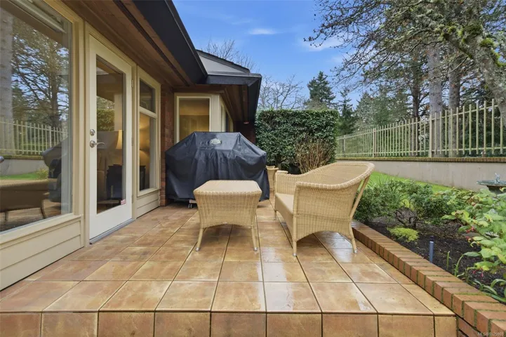 Downsize without compromise in this meticulously renovated, 1,638 sq. ft. single-level townhome in the prestigious gated community of Uplands Estates. Exceptional craftsmanship defines every corner, from the skylit entry to the sunken living room and open-concept chef’s kitchen featuring custom cabinetry, solid surfaces, and an induction range. Enjoy a private southeasterly patio overlooking the 7th fairway of Uplands Golf Club. This versatile 2-bedroom (or 1+den) layout includes a primary suite with a 3-piece ensuite and soaker tub, plus a second 3-piece bath with a walk-in shower. High-end finishes include top-tier window coverings and a lifetime-warranted hot water tank. Complete with a separate double garage and extra storage, this home offers the ultimate lock-and-go lifestyle in Oak Bay.