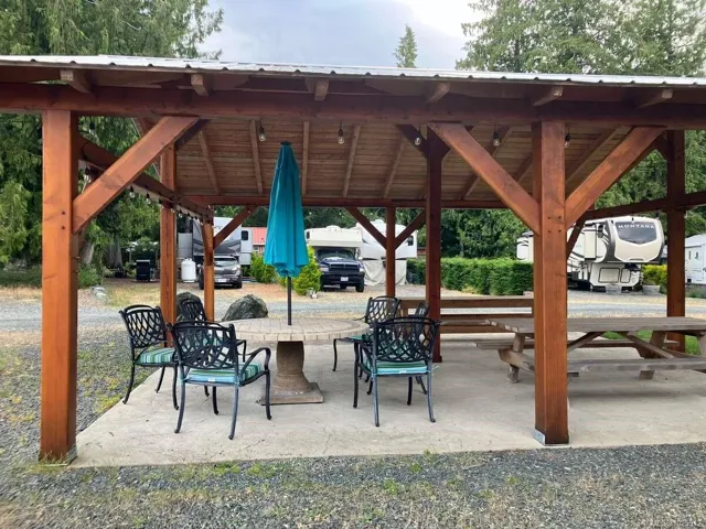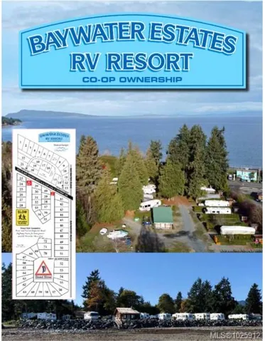Lot and RV for sale in desirable Baywater Estates in Qualicum Bay. Site 63 is potentially one of the largest sites of this recreational co-op (over 4000 sq ft). Large garden and patio areas. Hedging/ shrubs on 3 sides of backyard for privacy. Shed included. Recreational property allows for 182 days per year (self monitored – property is open year round). Co-op fees are $150 per month and include property taxes, water/septic/garbage services and cable. 2016 Highland Open Range Roamer 345rls 5th wheel in great condition (3 slide outs). Coin laundry / washrooms on property. All measurements are approximate.