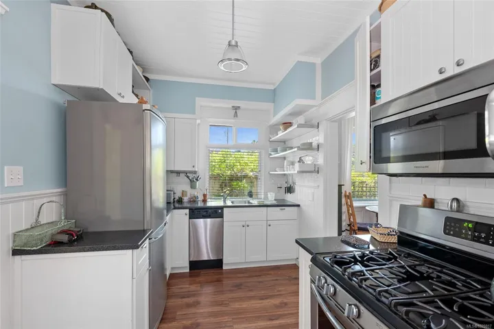 An exceptional opportunity in the highly desired Oaklands community! This charming cottage will surely impress & is the perfect alternative to a condo or townhouse. For those looking to step into the market or downsize, this 2Bed, 1Bath & 712 sq/ft home offers ONE-LEVEL living on an easy care lot. Feel at ease the moment you enter into the cute living & dining space which showcases character wainscotting, a cozy FP & abundant natural light. The updated kitchen boasts a Gas range, SS appls & smart shelving for extra storage w/easy access through a back mudroom to the rear South facing fully fenced yard – perfect for the kids & pets! The generous primary, updated bath & 2nd bed, which is ideal as a home-office or nursery, complete the home. Updates throughout since 2013/14′ include electrical, plumbing, insulation, sound proofing, windows, floors, doors & more. Located right next to Oswald Park & just mins to Cedar Hill Rec Centre, Hillside Shopping Mall, dining & all amenities!