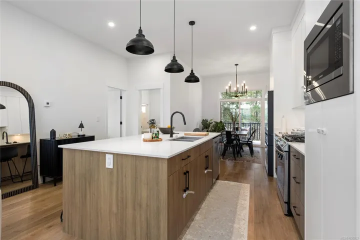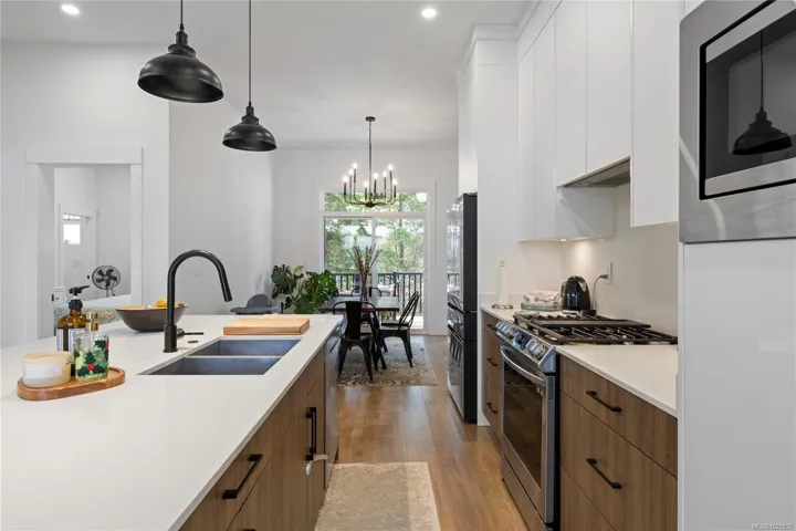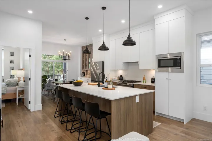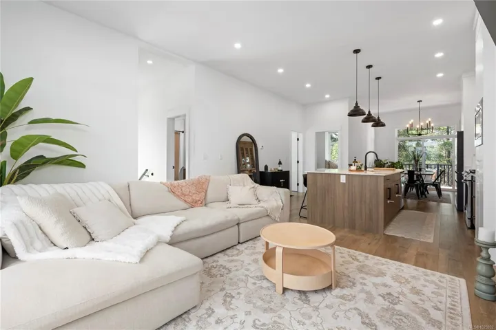 Welcome to 984 Harbour View St, a beautifully designed ground-level entry home with the main living space upstairs to take full advantage of the ocean & mountain views. The upper floor offers a bright open-concept kitchen, dining & living area with 10-ft ceilings, large windows & abundant natural light, complemented by a tasteful modern colour palette. The kitchen features, stainless steel appliances, gas stove, wine fridge & a large island. The living room includes a gas fireplace & access to a front balcony with scenic views, while the dining area opens to a covered rear balcony & backyard. The main level offers a spacious primary bedroom with walk-in closet & 3-piece ensuite, two additional bedrooms, full bath & laundry. Downstairs includes a rec/flex room, powder room & a 2-bed, 1-bath in-law suite with separate laundry & private patio—great for extended family or income. High-efficiency gas furnace & on-demand hot water. Measurements approx; verify if important.