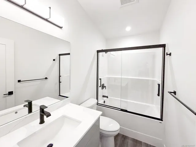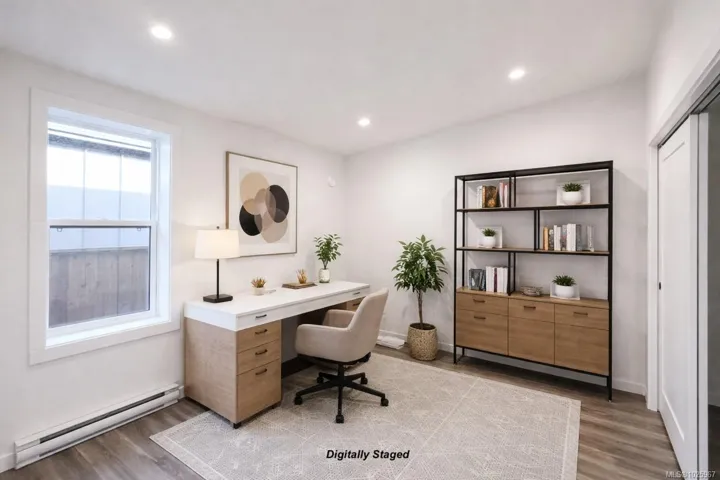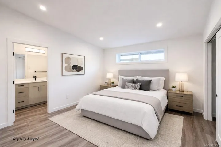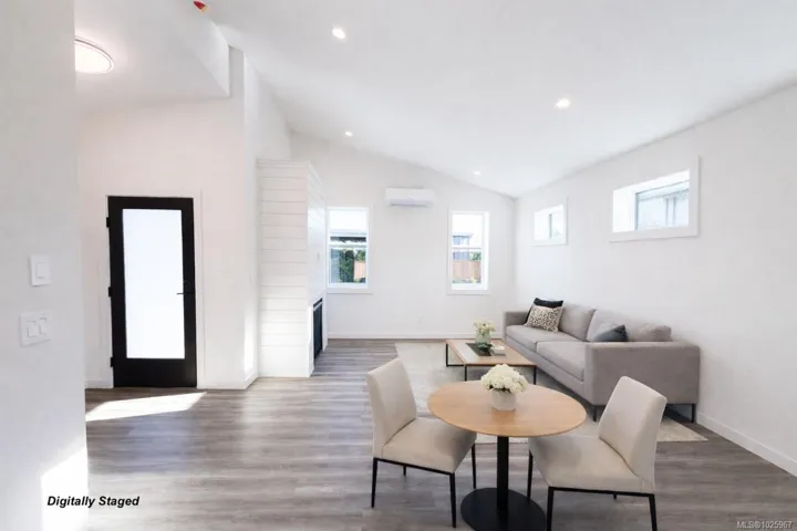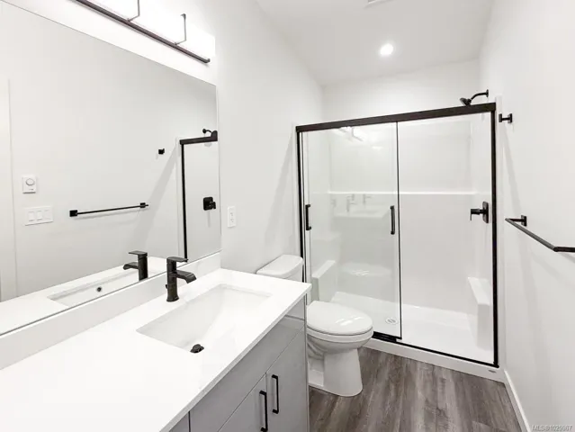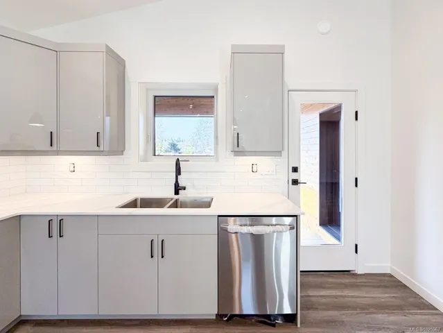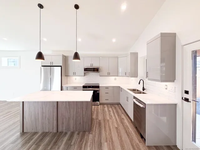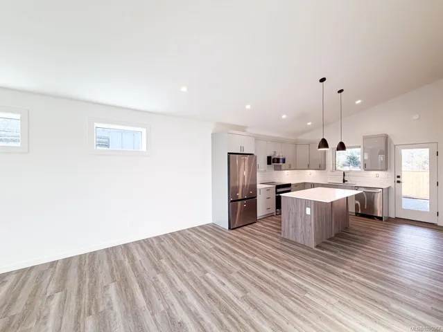 New and Improved, the Northern Flicker is a stunning 2 bed 2 bath home offering incredible value. Spanning over 1,200 sq ft, you’ll be impressed with the spacious layout, contemporary design and high end finishings. Turn-key ready with full appliance package, quartz countertops, heat pump, modern kitchen cabinets, large island and well appointed laundry room with storage, sink and quartz countertops. The open concept kitchen-dining-living area is light and airy with soaring 12 ft vaulted ceilings and 7 windows for plenty of natural light. You’ll love the large gas fireplace for efficient and cozy heat. The show stopper is the 14′ x 10′ covered rear patio, perfect for relaxing with family and entertaining friends. With a metal frame, metal siding and metal roof, maintenance Is minimal. Notice the thick 12′ walls, high energy performance and low running costs. GST applies. The Flats of Cumberland is a brand new community of 56 beautiful homes.