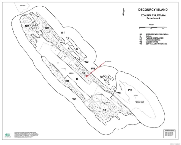 Decourcy Island Building Lot. This 1.17 acre property rectangular in shape with 150 ft of frontage & 340 ft deep offers an upward sloped topography towards the rear of the lot with the middle area leveling off before it slopes upward towards the second shelf. Ideally situated on the island close to water access (Russell Place) and just minutes from Pirates Cove Marine Park which offers a private marina called “Russell Landing Marina” open to residents that also has a Float Plane dock. Decourcy Island offers potable water at the park well, commercial wharf w/crane hoist for offloading materials, community association with their own fire department and a tranquil and serene lifestyle with off grid living with no ferry service. Easily accessible boat access from Boat Harbour, Cedar or Gabriola Island for weekend getaways and summer vacationing. The surrounding area offers excellent fishing, crabbing, prawning and all the sightseeing and exploring you want to enjoy! GST applicable
