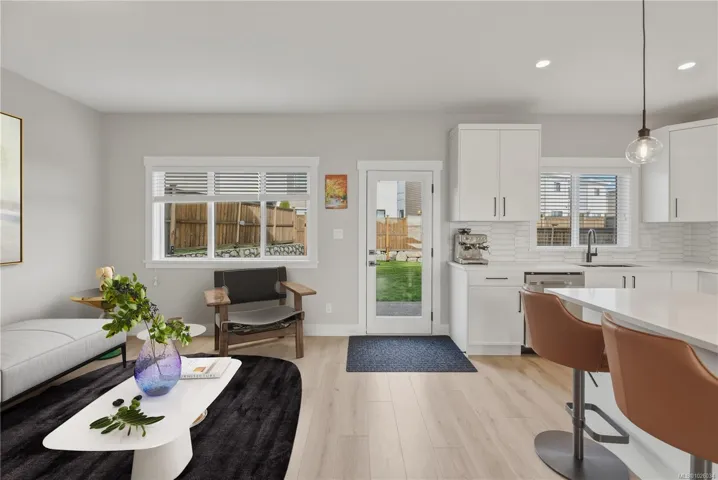 Perched on a higher lot in Westview at the base of Skirt Mountain, this newer 4 bed + den, 4 bath home offers sweeping ocean & mountain views from the front deck & primary bedroom, stretching from the Olympic Mountains to Juan de Fuca Strait & downtown Victoria. Thoughtful builder upgrades & custom millwork enhance the well-maintained interiors, and the modern open floor layout is ideal for entertaining & everyday family living. The grand primary retreat features a walk-in closet & spa-inspired ensuite. Plus the legal 1-bed suite with private entry, laundry, high ceilings & its own outdoor area adds flexibility or income potential. Enjoy efficient year-round comfort with a modern heat pump & gas furnace, plus a cozy gas fireplace. The flat backyard is a blank canvas ready for your vision & the perfect place for your kids and pets to enjoy. Situated in a calm, family-friendly setting near lakes, trails, parks & conveniently close to Bear Mountain Resort & all West Shore conveniences.