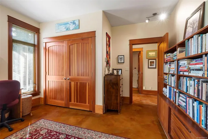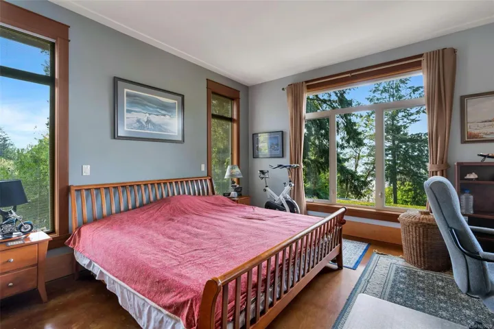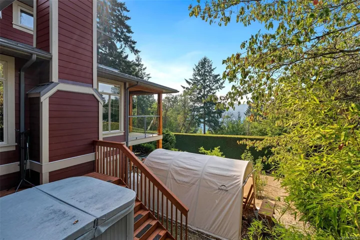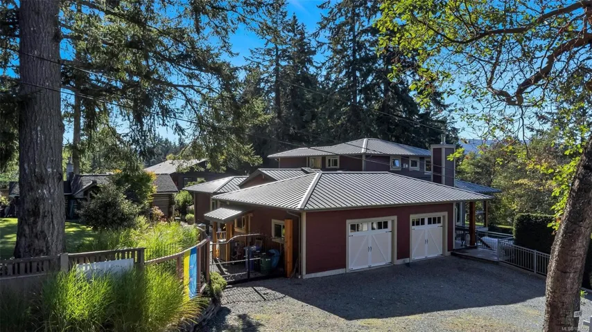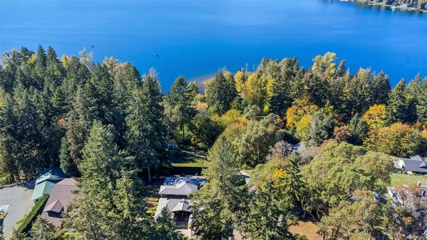 Thoughtfully designed and beautifully crafted, this exceptional custom home offers over 4,400 finished sq. ft. in a picturesque Shawnigan Lake setting. With 3 bedrooms and 4 baths, the main level impresses with soaring 9’6” ceilings, a vaulted kitchen, and striking acid-etched concrete floors. Western exposure provides beautiful lake views and stunning sunsets. Radiant in-floor heating on both the main and lower levels provides year-round comfort. Much of the interior woodwork was milled from trees on the property, lending warmth and authenticity throughout. Outdoors, the fully deer-fenced yard is a gardener’s haven, complete with raised beds, irrigation, and all benefiting from years of chemical-free gardening practices. The distinctive split garage offers versatility, while French slate accents the bathrooms and lower level. Ideally positioned above Old Mill Park in a sought-after neighbourhood, just moments to beaches and lakeside trails. Includes a charming 395 sq ft cottage.