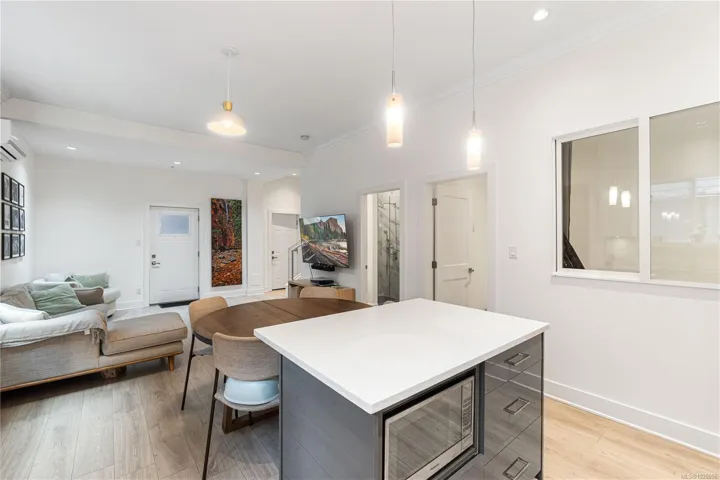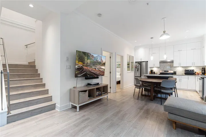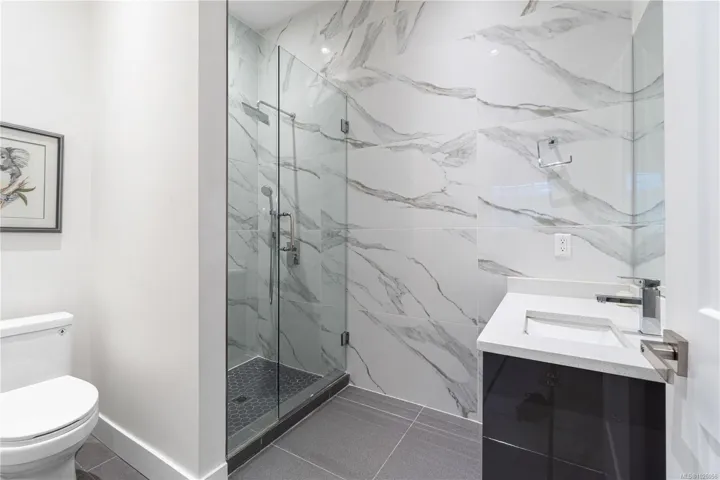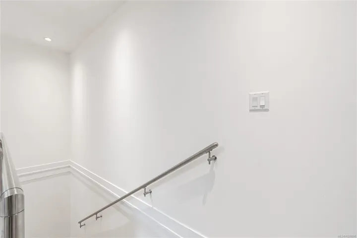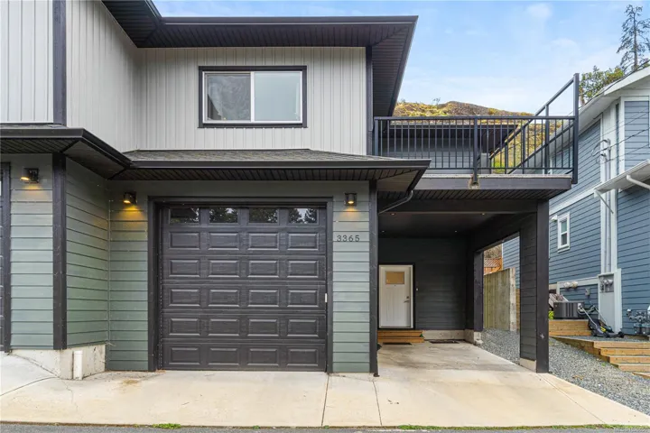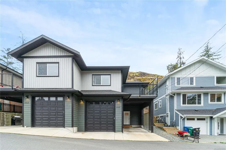 Departure Bay gem! Desirable location near Linley Park. Quality, 2021 built, half-duplex with custom features. Nearly 1800sqft 3 bed + den & 3 bath. The main floor boasts 10 ft ceilings, an open-concept kitchen with quartz counters, high-gloss cabinetry, stainless appliances & open concept dining/living areas. A den on the main next to a 3 pc bath with custom shower adds versatility. Glass & steel railings on stairs to a skylit upper level with 9 ft ceilings. Stunning primary suite featuring a luxurious 5-piece ensuite, walk-in closet & large balcony. 2 additional bedrooms, 3rd full bath & laundry room. Hardi-board exterior & low maintenance lot. Stylish finishing with laminate & tile flooring, quartz counters throughout, floor to ceiling tile showers, extensive pot-lights & fire-safe sprinklers. Energy-efficient heating & Air conditioning. No strata fees. Fenced back yard & patio. Extra-tall garage & carport. Property manager & excellent tenants in place. All measurements approximate.