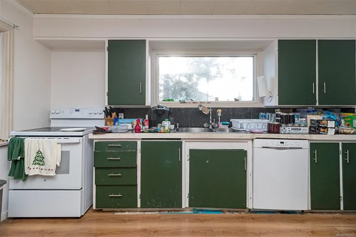 This 2 bedroom 1 bathroom starter or retirement home sits on a huge, flat, Garden Parklike setting 0.29 of an acre lot, right in the Sooke Town Core, on a no through street, ideal investment, with development potential or maybe build a new house in the back and have this as a cottage (need to probably remove the shop/garage area to do that) loads of potential, great for home cottage business potential, be hard to find a better location. Owners have done a great job setting up with outbuildings sheds and garden beds to be self-sustainable for food, as much as possible, Located at 6716 Ayre Rd.