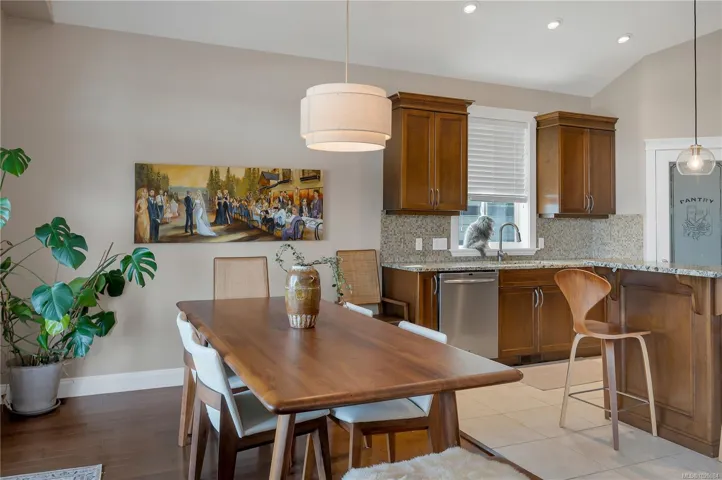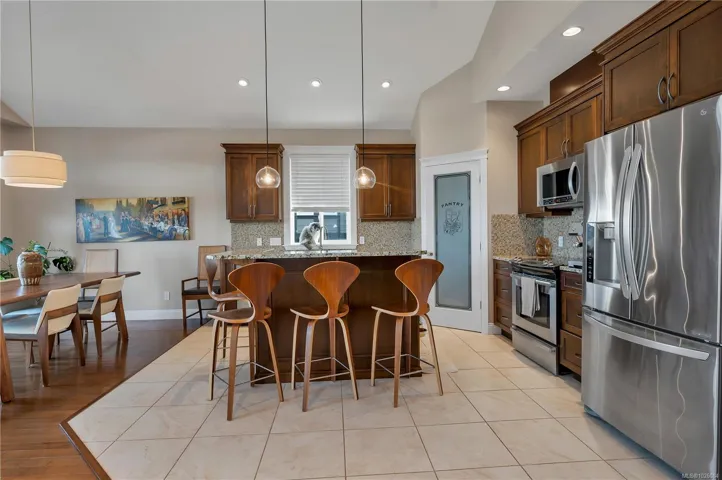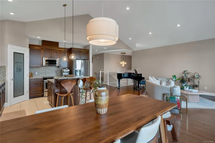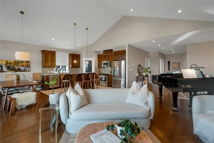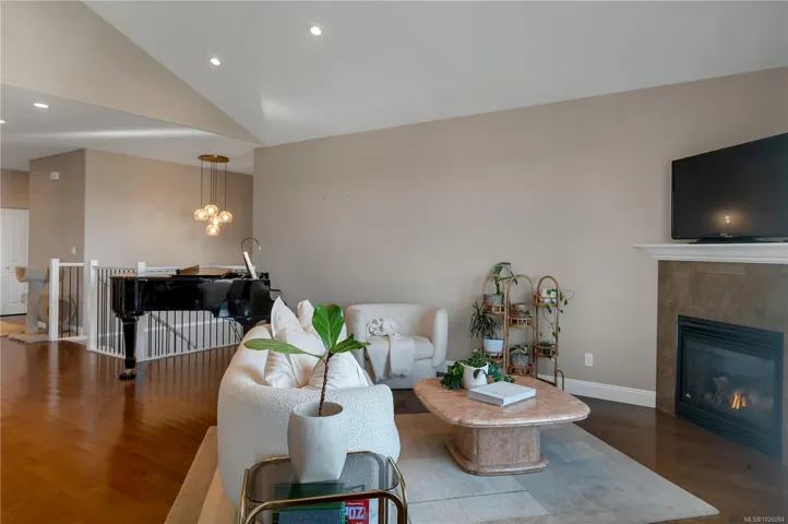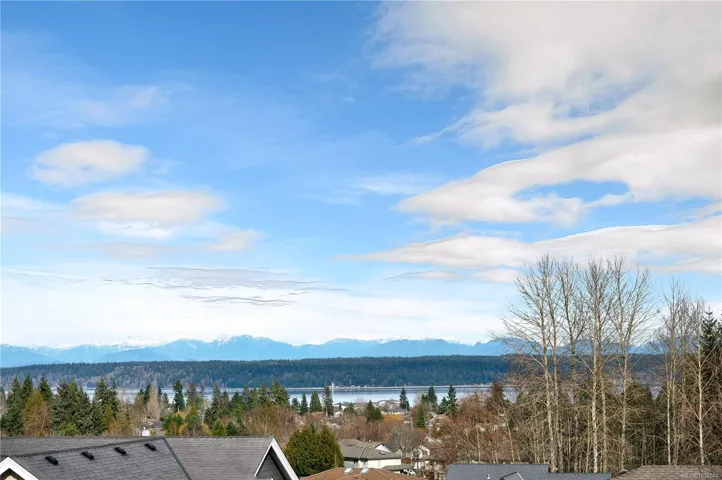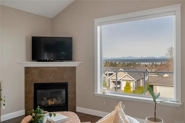 Positioned on an elevated lot in Georgia Park, this refined 4 bed, 3 bath home offers space, views & connection to nature. 14 ft vaulted ceilings & an open layout create light & flow. From the kitchen, dining & living room, enjoy ocean & mountain views anchored by a gas fireplace. The kitchen features granite counters, heated tile floors, walk in pantry & raised breakfast bar. Updated, good quality lighting enhances elegance & curb appeal. The covered front deck with natural gas hookup extends your living space year round, while the backyard’s sunken patio offers relaxed lounging. Spring brings a beautiful wall of hydrangeas, full privacy and gorgeous Perennials. The primary suite includes a jetted tub, heated tile floorin bathroom, rain shower, double sinks & walk in closet. Downstairs offers 2 bedrooms, full bath & flex space with suite potential. Steps to forested trails, pond & a short walk to the ocean. Double garage, landscaping & irrigation complete this Campbell River offering.