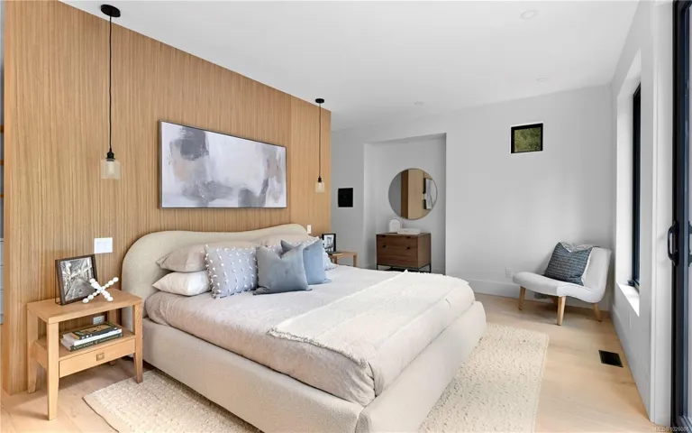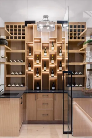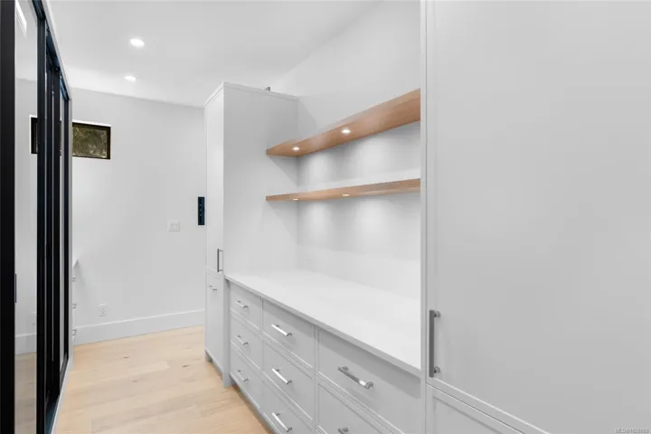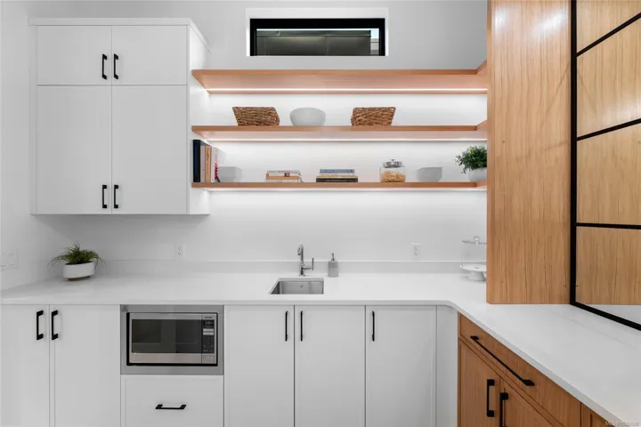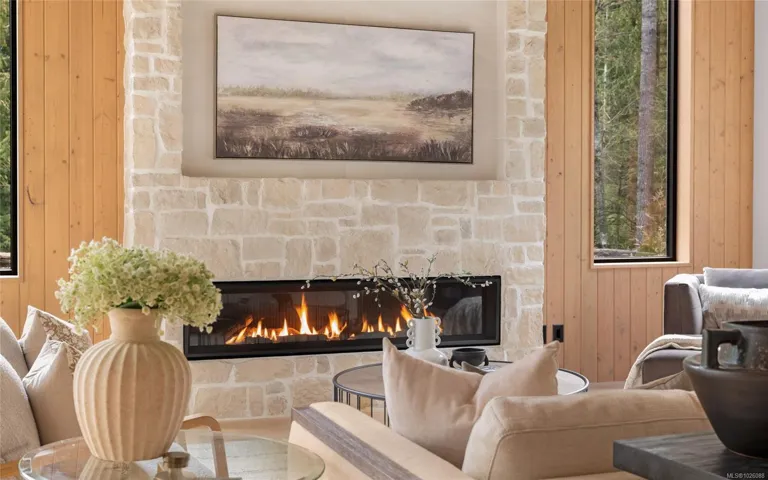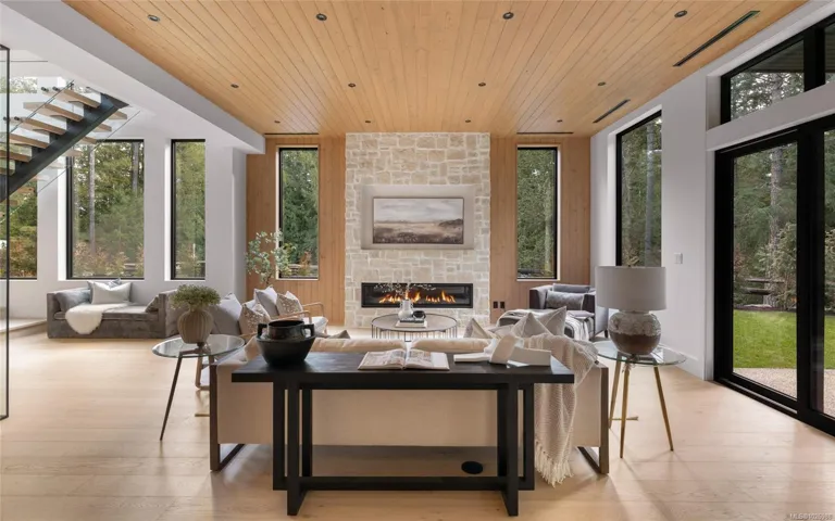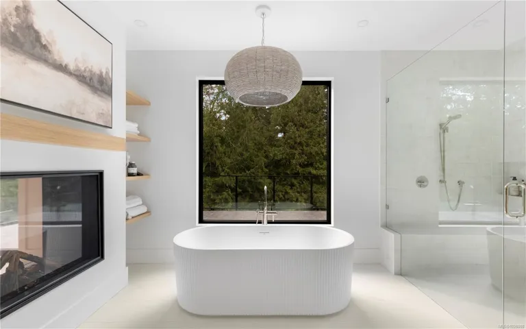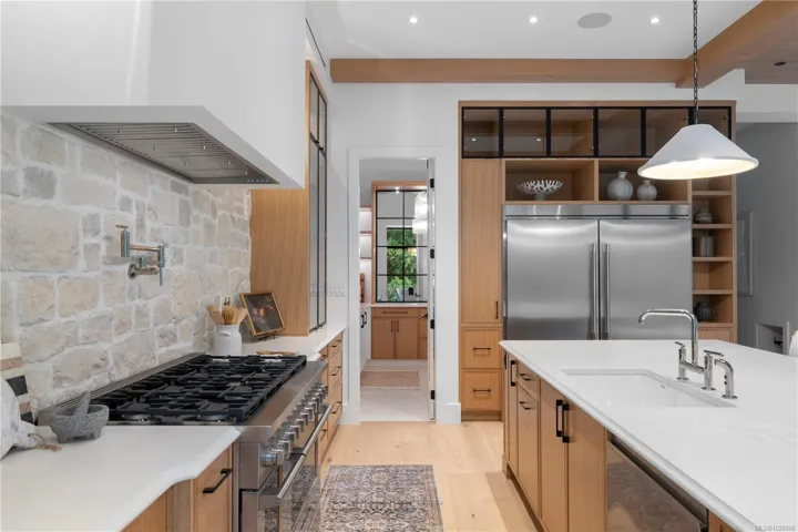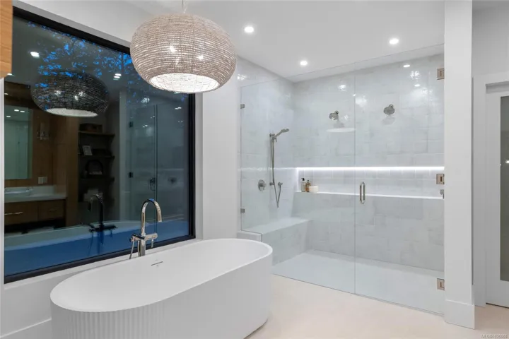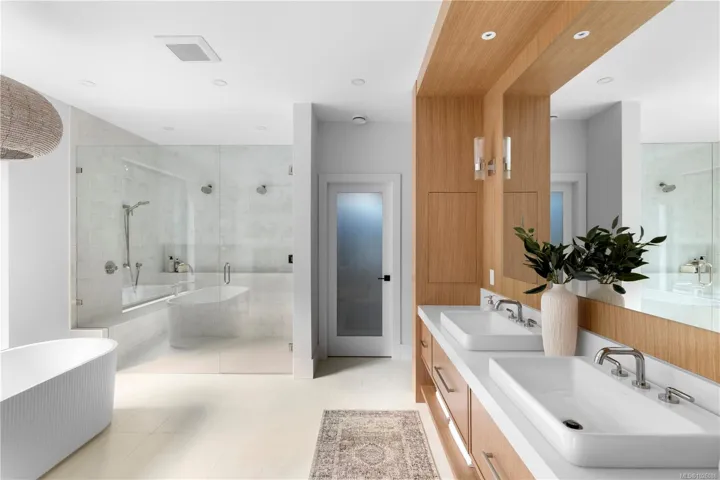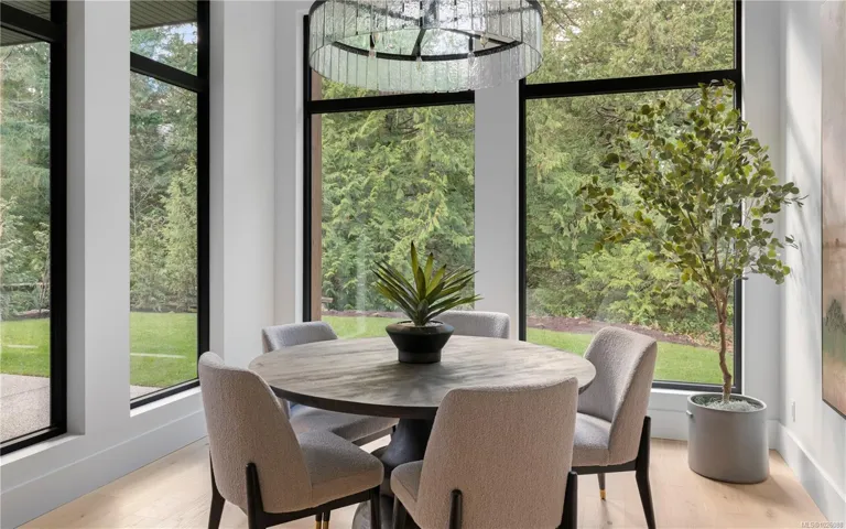 This exceptional West Coast Contemporary, Step Code 4–certified home blends performance with craftsmanship. Built by high-end boutique builder Qualis Builders, this home is situated on one of the most desirable lots in the Olympic View Golf Course, offering an abundance of natural light. Featuring premium windows with German hardware, an extensive brick exterior, & striking fir and wood ceiling details throughout. The interior showcases a dramatic floating staircase, rift white oak cabinetry, stone finishes, a dedicated office, & a thoughtfully designed layout with three spacious bedrooms, each with its own private ensuite. The gourmet kitchen is anchored by a 48” Fisher & Paykel range, ideal for entertaining. The spa-inspired primary ensuite features a his-and-her shower and custom wrapped cabinetry, while an incredible wine room and two gas fireplaces add a luxurious touch. Backing onto a serene greenbelt, this home delivers privacy, efficiency, & luxurious quality in every detail.