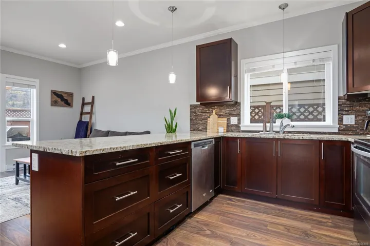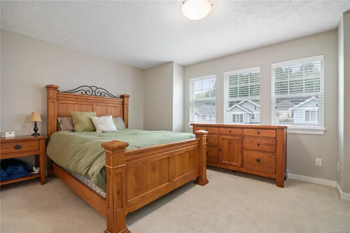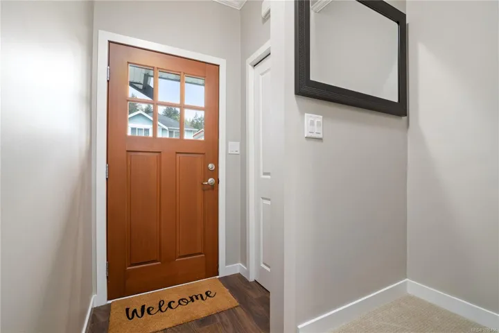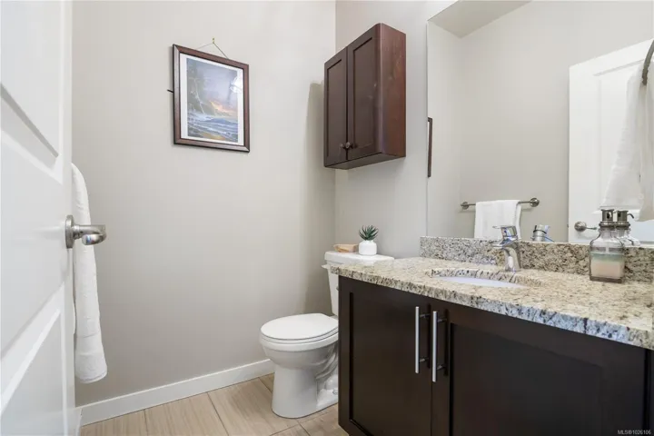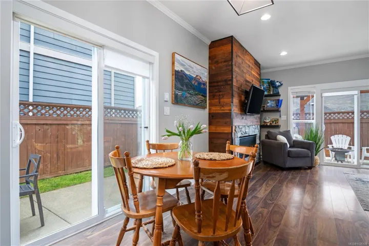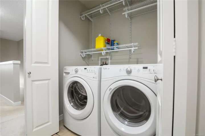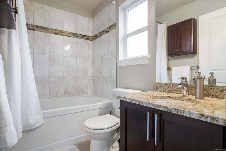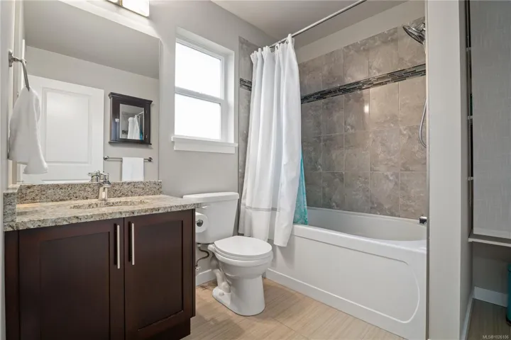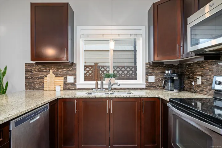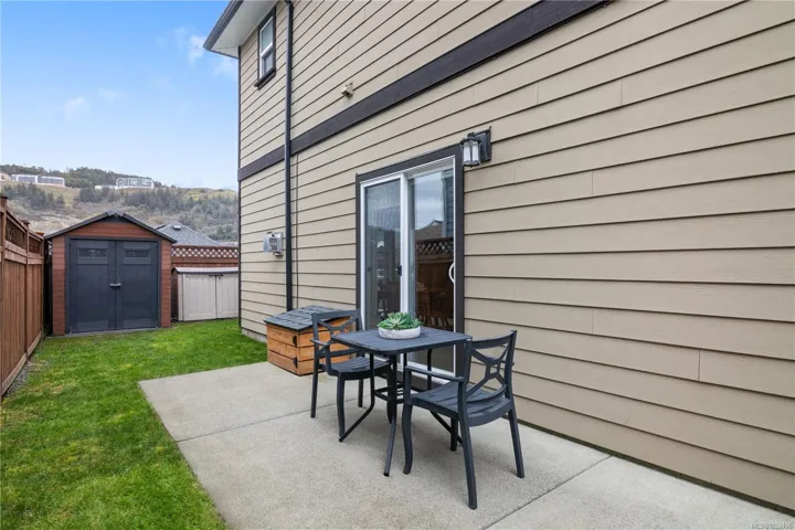 Welcome to 2952 Trestle Place. This well-cared-for Kettle Creek home offers just over 1,300 sq. ft. with 3 bedrooms, 3 bathrooms, an open-concept kitchen/living area, single garage, and a fully fenced yard. The main level features a bright inviting kitchen with granite countertops, wood cabinetry, stainless steel appliances, and a built-in garburator, complemented by engineered hardwood flooring. Step into your private yard with two patios, a custom timber-framed awning, and two garden sheds. Upstairs includes laundry, two full baths, and all bedrooms, including a generous primary with walk-in closet and ensuite. Additional features include central vacuum, 200-amp electrical, and underground sprinklers. Located in a family-oriented neighbourhood walking distance to Pexsisen Elementary & Centre Mountain Lellum Middle Schools close to Langford Lake, trails, the YMCA, and amenities. Truly a wonderful home.