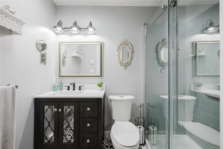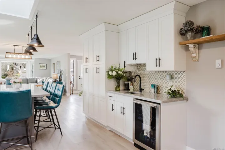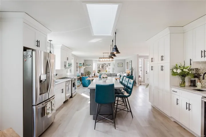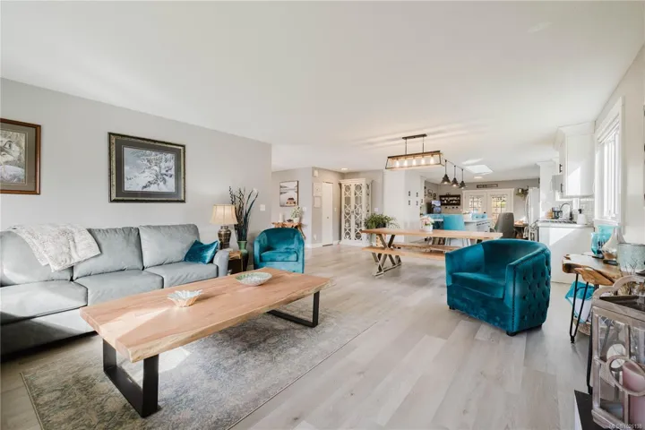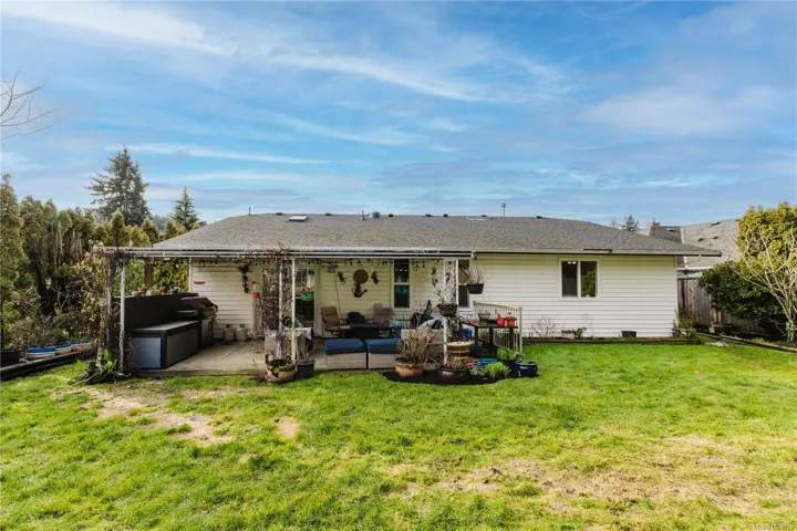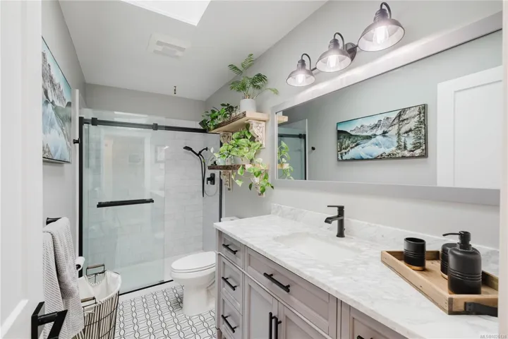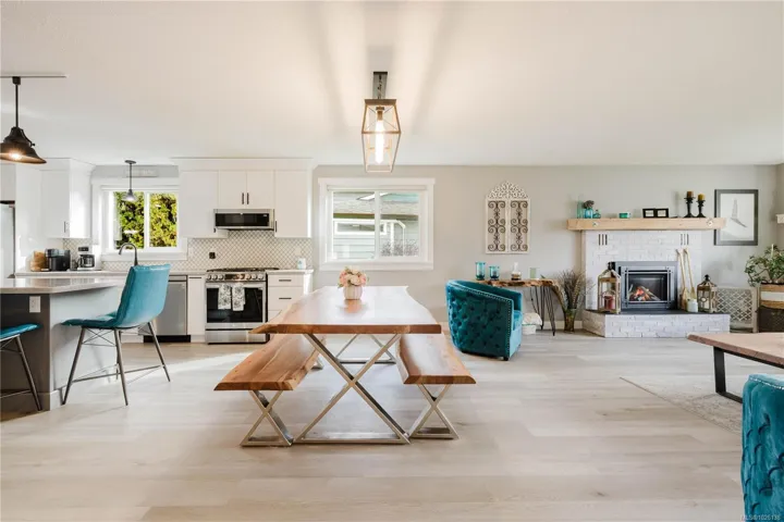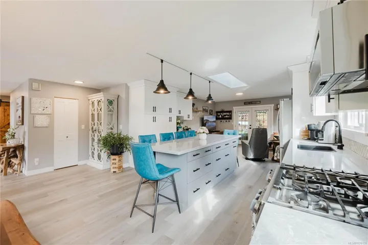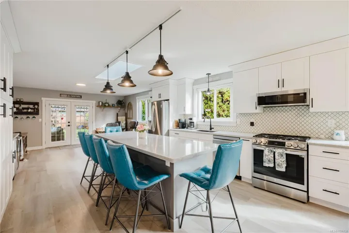 On a quiet street in Colwood Creek Estates, sits this extensively updated no-step RANCHER with a Double Car Garage. With almost 1,800 square ft of living space, 3 spacious bedrooms, 2 full bathrooms and a large level lot, this property is a must-see. The home has been stunningly updated, including new Luxury Vinyl flooring throughout with new carpets in the bedrooms; new kitchen featuring quartz counters, Large island with bar seating, tile backsplash and S/S appliances; 2 updated bathrooms with decorative tile flooring and new vanities; new light fixtures, trim, doors and baseboards; and fresh paint. The ductless heat pump makes this home efficient, as does the new gas fireplace in the living room, featuring a custom wood mantle. Outside you will find a huge driveway, an additional space for an RV, & a large, flat, fenced backyard. Great location, within walking distance to the Galloping Goose Trail, Colwood Creek Park & Belmont Shopping Centre.