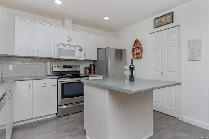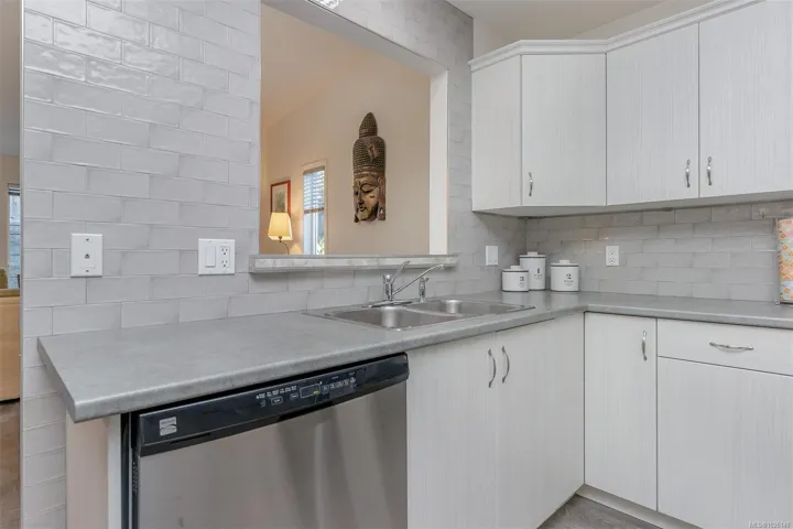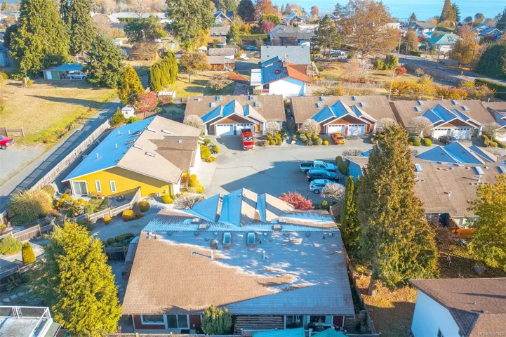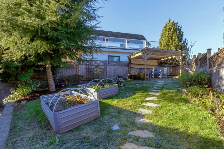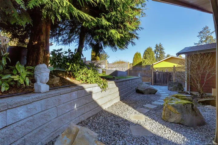 Welcome to popular Belwood Village in the heart of Ladysmith. This beautifully maintained 2 bedroom, 2 bath patio home is privately situated at the end of the complex, offering a large fenced yard for added space for gardening and privacy. Bright and inviting , the open – concept design features three skylights , a vaulted living room ceiling, a cozy thermostat-controlled natural gas fireplace. The upgrades include, the Scottish oak laminate flooring, elegant Italian subway tile back splash in the kitchen. Enjoy the pass thru from the kitchen to dining room for easy serving. Low maintenance , south facing rear patio for your privacy and gardening. Sit under the gazebo and let the time slip away. Pet friendly (with approval) from strata. RV storage available. New roof. Within minutes to downtown Ladysmith shops and recreation and the beach.