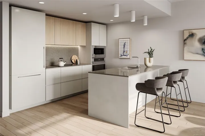 The Beachlands is a 134-acre oceanfront masterplanned community in the city of Colwood, ideal for homeowners seeking an elevated westcoast lifestyle. The Beachlands boasts nearly 50-acres of parks and trails, 1.4km of shoreline, and 7 golf courses within 20 minutes. Origin at The Beachlands is the first opportunity to own at this iconic community, and offers nearly 20,000 square feet of amenities including an expansive lobby, fitness centre with sauna, an oceanview rooftop lounge with outdoor kitchen and BBQ, a shared entertainment lounge with kitchen and dining, a co-working lounge, and courtyard with play area. Carefully considered floorplans and materials combine to create stunning with overheight ceilings in main living areas, central air conditioning, engineered hardwood flooring throughout, beautiful cabinetry with integrated appliances, and quartz countertops with full-height backsplash in kitchens. Secure underground parking with EV-ready stalls. Bike locker included.