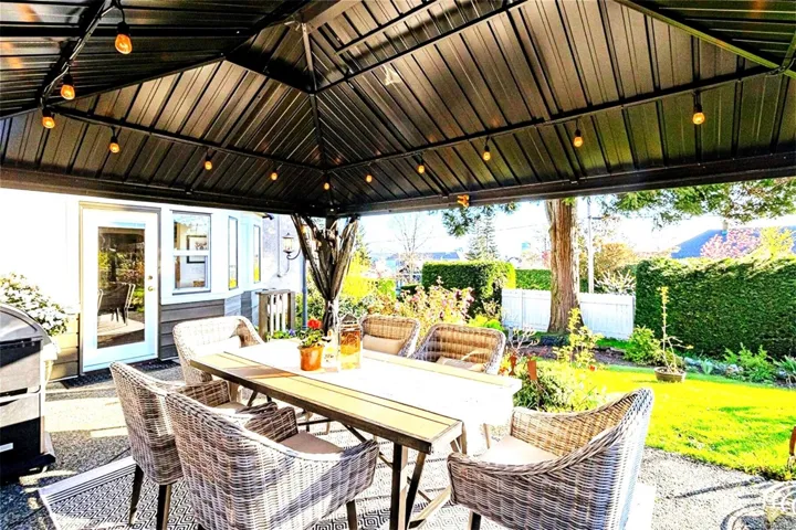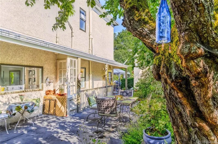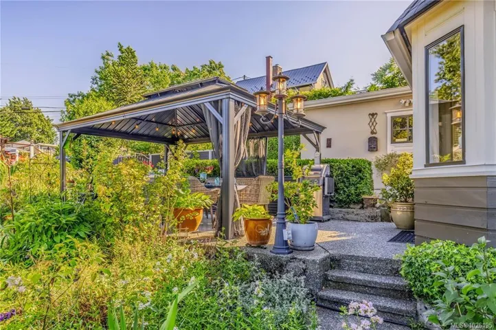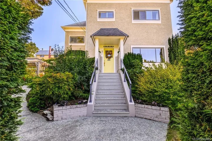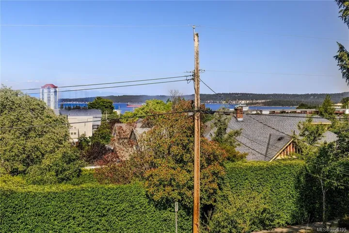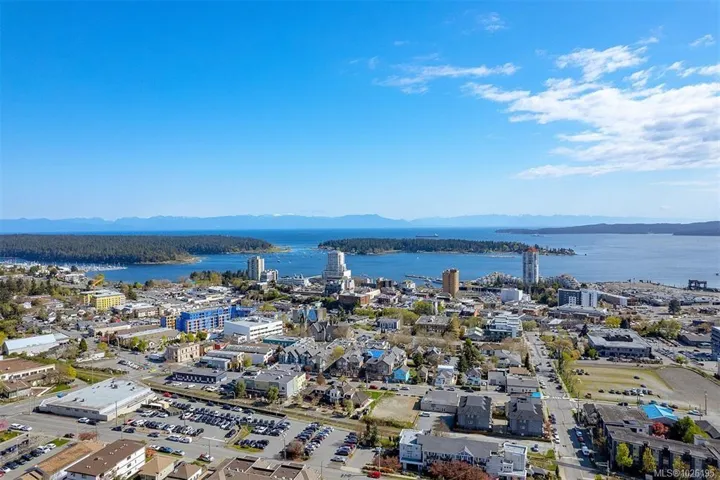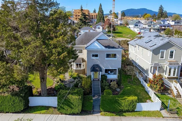 Tastefully renovated move-in ready 2,500 SqFt Old City Quarter 3 bed home with ocean views, mature gardens and privacy, easy walking distance to all the amenities you need. The Old City Quarter shopping district, iconic downtown Nanaimo waterfront, pubs, coffee shops, restaurants and the Port Theatre are steps away. Park your vehicle in the ample driveway and/or single wired garage and save gas while doing errands, or catch a local bus to Woodgrove or VIU. For commuters or remote workers Vancouver is easily accessible by the Hullo Ferry, B.C. Ferries, Harbour Air and Heli-Jet. For your future plans the R14 zoning allows for a carriage house or a 4-plex development. The heat pump with A/C ensures you are cool in the hot summers as does the back private shaded courtyard and the large gazebo/eating/barbecue area located just off the bright and airy custom designed kitchen. This classic home meets present needs of shopping local and has the added potential to meet future expansion needs.