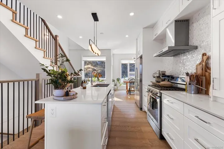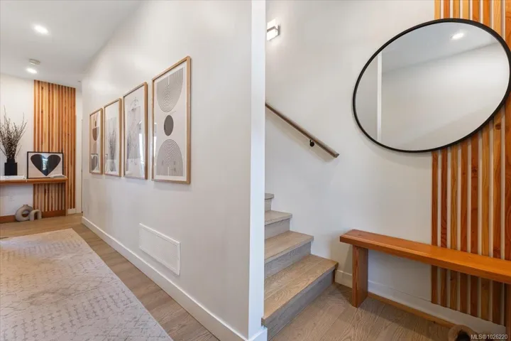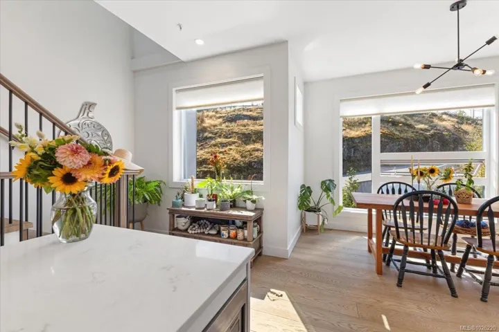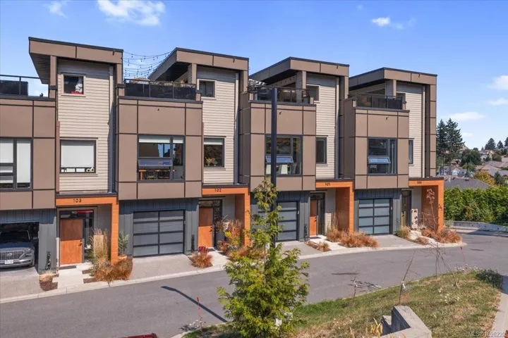 Experience breathtaking ocean and mountain views from this modern North Nanaimo townhouse, complete with a 700 sqft rooftop patio designed for entertaining or relaxing in style. Offering 1,667 sqft across three levels, this 3-bedroom, 3-bathroom home combines thoughtful design with modern finishes. The main level showcases an open-concept kitchen, dining, and living area with balcony access, large windows, and abundant natural light. The entry-level primary suite includes a private balcony, walk-in closet, and spa-inspired 5-pc ensuite with a soaker tub. The lower level features a spacious second bedroom with walk-in closet, a 5-pc bath, office and laundry room. Every floor offers balcony access to maximize the sweeping views. Located near Linley Valley trails, shopping, transit, and Nanaimo North Town Centre, this home blends luxury with everyday convenience in one of Nanaimo’s most desirable neighbourhoods.