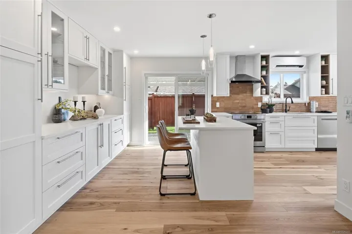 Open House Sun March 29 2:00-3:30. Welcome to this immaculate, contemporary rancher in sought-after Lochside Estates, offering over 1,400 sq ft of fully renovated living space complemented by a double garage, private patio, and dedicated gardening area. Thoughtfully reimagined throughout, the home features new heat pump, engineered wide-plank hickory flooring, a refined modern kitchen with quartz countertops and new appliances, smoothed ceilings with dimmable potlights, and bright bathrooms with continuous floor to shower tile and quartz surfaces. Set in a quiet corner of this distinct cul-de-sac, the home enjoys excellent privacy, sunny exposure, raised garden beds, and a newly fenced patio—ideal for outdoor enjoyment. Just one block from a waterfront park with walking trails, and conveniently close to Sidney, the Lochside Trail, the airport, ferry terminal, and Saanich Peninsula Hospital, this is an exceptional Peninsula location with both tranquility and accessibility.