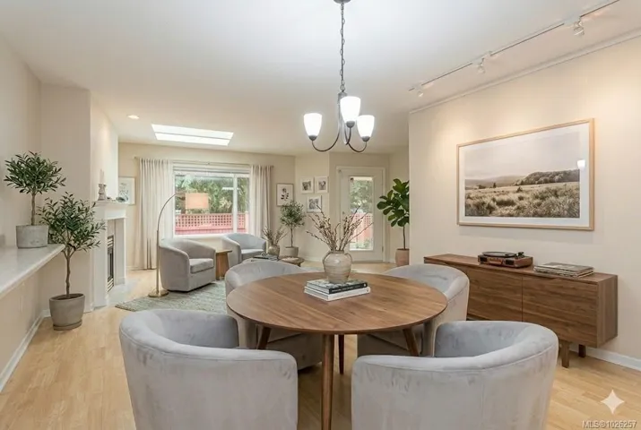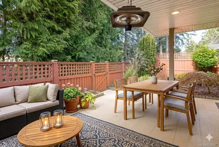 This rarely available patio home in desirable Arbutus Park won’t last. Offering 1,276 sq ft of comfortable main-level living, this bright 2 bed/2 bath rancher is ideal for easy, stair-free lifestyle. A tiled entry w/ skylight welcomes you into rich hardwood floors, a sunny bay window, & a cozy gas fireplace in living rm w/ skylight. The spacious kitchen features abundant cabinetry, sun tube and a generous dining area perfect for hosting family & friends. Retreat to oversized bedrooms, incl a primary suite w/ walk-in closet & large ensuite. Enjoy your private, fenced patio surrounded by lush shrubs—your own peaceful retreat. Large single garage w/ attic storage & bonus Murphy bed included. This well-run, pet-friendly 55+ strata offers a friendly, welcoming community atmosphere, newer roofs (2023), and steps to scenic trails to downtown & recreation, plus a short drive to the Beach. Quietly tucked at the end of the complex—don’t miss this opportunity! Your Best Life, Your Next Chapter!