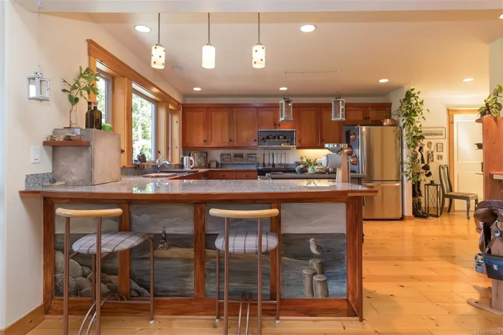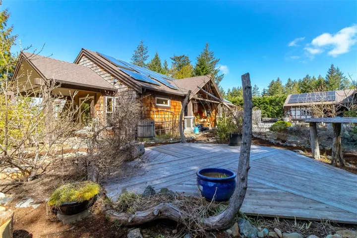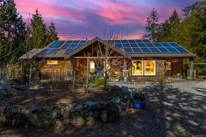 PRIVATE. PEACEFUL. PARADISE. This one-of-a-kind property is not for the average buyer. It’s tailored for those who seek true privacy with ocean and mountain vistas, and want to be surrounded by nature while living a healthy, active, creative lifestyle. If this sounds like you, confidently drive up the fully paved, wider-than-usual driveway & feel the deep sense of “Ah, peace and quiet… finally home.” Best of both worlds – PRIVACY + OCEAN/MOUNTAIN VIEWS! Just minutes to Qualicum Beach: restaurants, pool, theatre, boutique shops. This 4-bedroom, 4-bath Galloway-built home offers casual West Coast living with European elegance: 10-foot ceilings, river rock fireplace, cherry kitchen with granite, Venetian plaster, travertine walk-in shower, sauna, & cold tub. Fruit trees, berries, raised beds, 10K gal rainwater collection system + great well, 18KW solar, studio, garage, shop space, suite potential—no hydro bills!