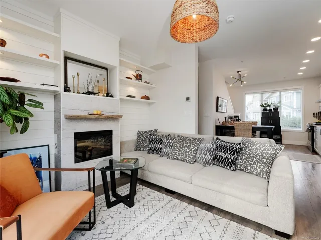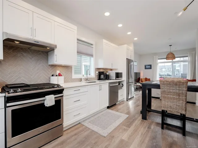 AWESOME VALUE!! Welcome to 165, 3501 Dunlin St – Seaside living in this awesome townhome in Royal Bay. Tucked away from the busy streets, you’ll love this quiet, like new, 1098 sq ft END UNIT, WEST facing, Sunny and Brite 2-bed, 3-bath home. West Coast Designed, you’ll feel warm & welcome with Tons of natural light throughout the open concept living area with 9′ ceilings, custom blinds & modern finishes. The impressive main floor kitchen is complete with 4-burner gas stove, Shaker cabinets & SS appliances. Upstairs, both beds have their own private & full Ensuite baths.Features include a large single garage used as a Media Room + parking space outside, Gas furnace, hot water on demand, sunny south facing balcony & white picket fence w’ yard to greet you at the front entrance. Centrally located in the Royal Bay community that includes playgrounds, a short walk to the beach, walking Trails around Royal Bay new schools & Quality Foods, Starbucks all enhance the Village lifestyle.