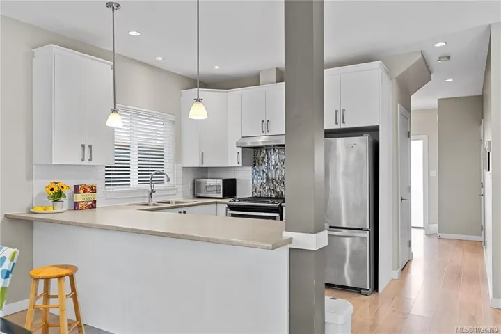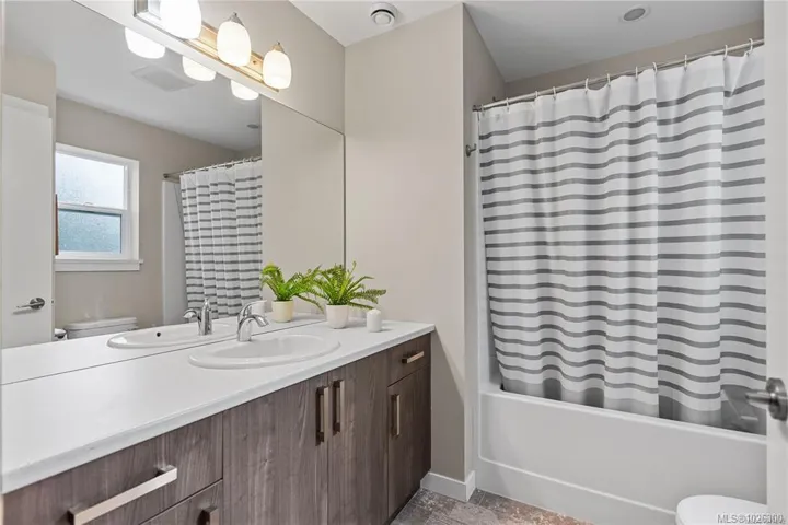 Quietness and Convenience! Step into a bright, 9 ft ceiling height, welcoming space with an open concept kitchen featuring quartz countertops, stainless steel appliances, and stylish cabinetry. The large living-dining area is perfect for relaxing, with a cozy natural gas fireplace and patio door to your private, flat, fully fenced, south-facing backyard. Upstairs, the generously sized primary bedroom is a true retreat with En-suite. Three additional well-sized bedrooms, a full 4-piece main bathroom, and a walk-in laundry room complete the upper level. On-demand hot water, HRV , and a natural gas FP for maximum energy efficiency and low monthly costs. This home is also ideally located just a short walk from Sooke Core, local parks, schools, pool, arena, and public transit. Enjoy easy access to hiking and biking trails, crabbing off the public dock, plus plenty of great dining and shopping options. This beautiful home offers the perfect blend of comfort, style, and convenience.