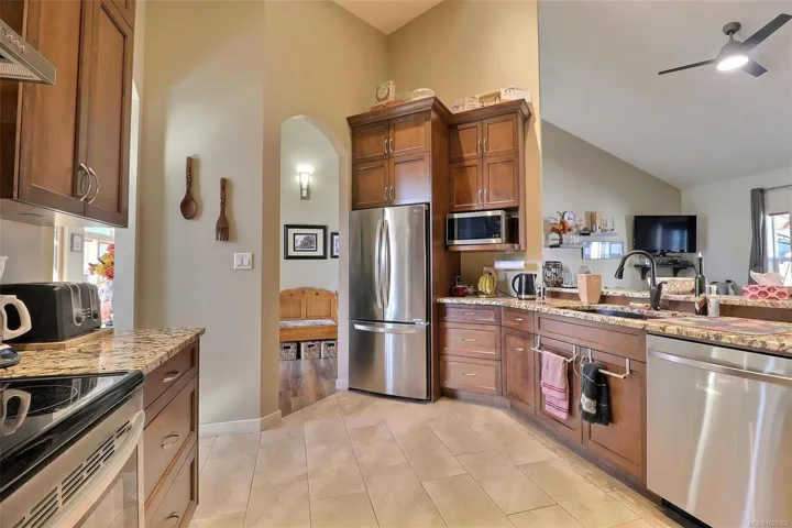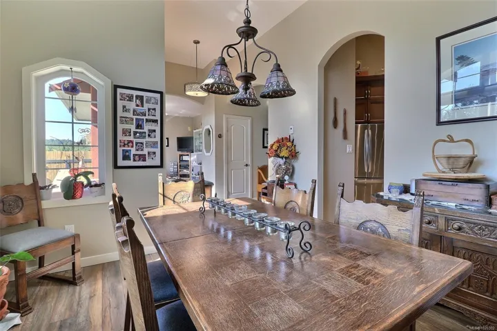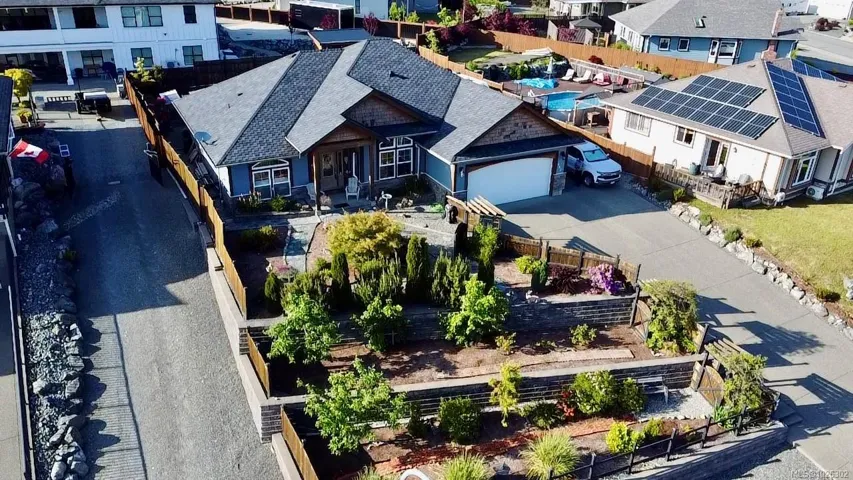 Price reduced, motivated seller. This beautiful 1850 sqft, 3 bedroom, 2 bathroom rancher is located in The Slopes at Lake Cowichan. The home has a 16’ vaulted ceiling at the peak and beautiful arched entryways throughout, giving this home a certain elegance. Enjoy the Chef’s kitchen with solid Maple and Birch wood cabinets, stainless steel appliances, Granite countertops with eat up bar that is open to the living room with French doors that lead to a covered patio which is great for those year-round barbecues. The Primary bedroom has a walk-in closet, access to the covered patio and a spa like 4pc ensuite. The home boasts a formal dining room, office, 2 more good sized bedrooms, 4pc bathroom and laundry room that leads to your double car garage. The backyard has raised garden beds, green house, 2 storage sheds and is fully fenced with RV parking.