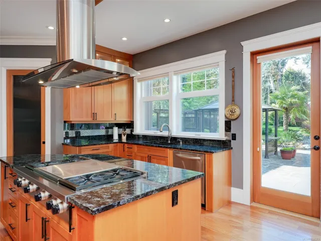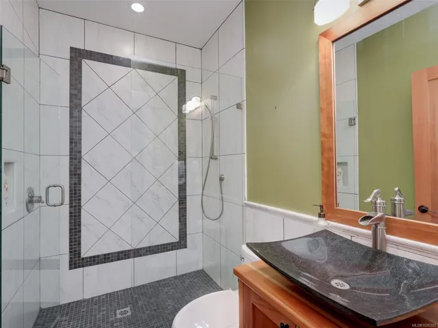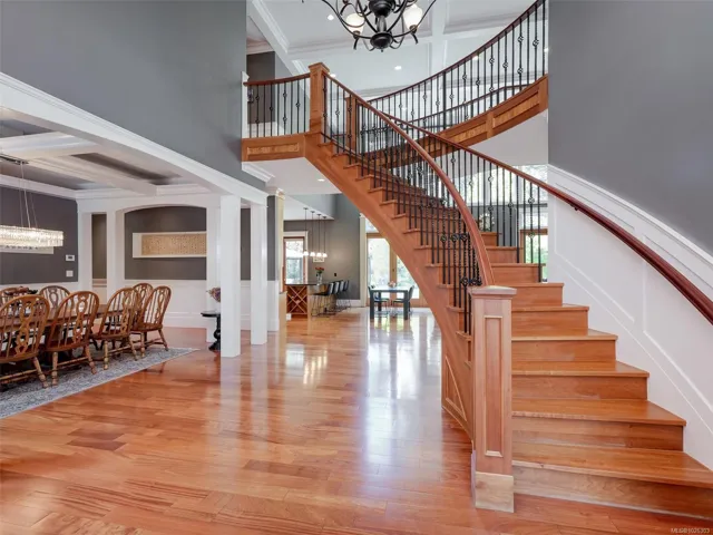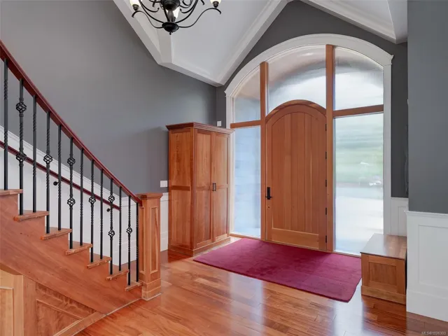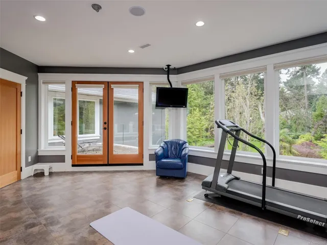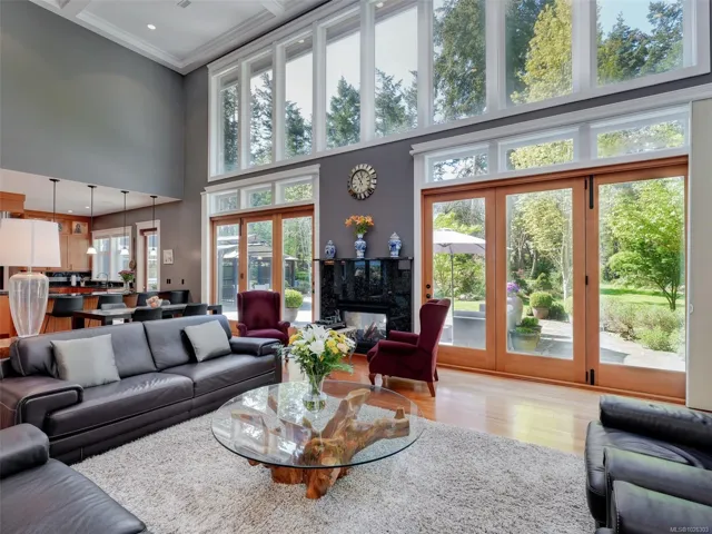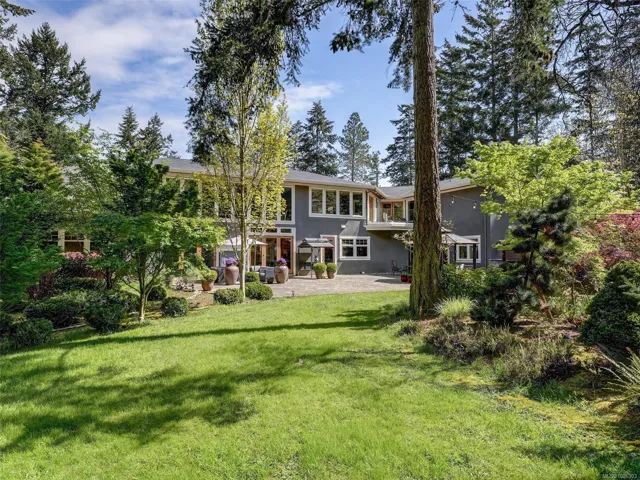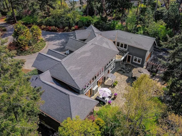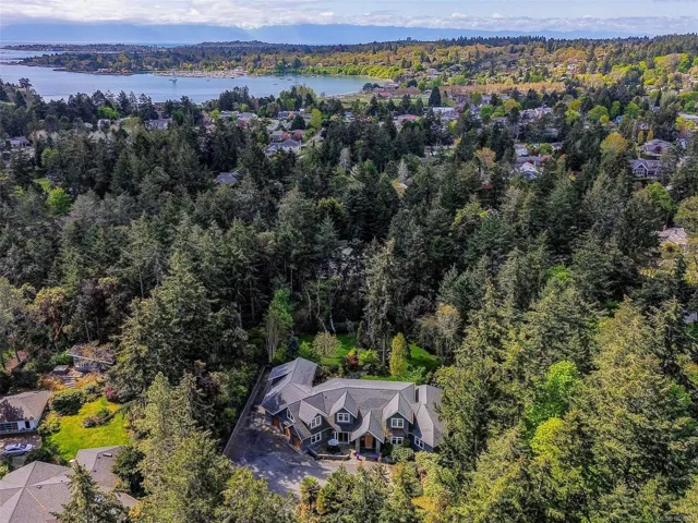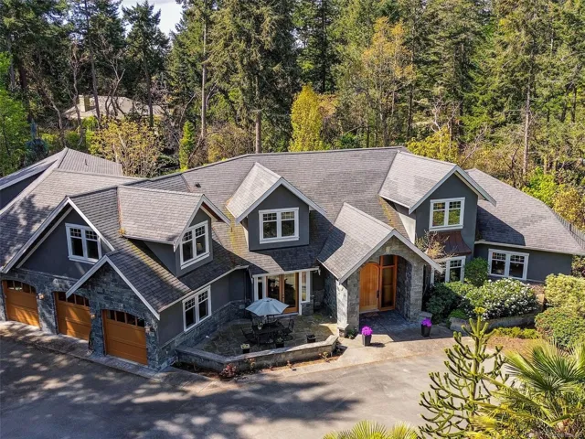 A rare architectural achievement where West Coast elegance meets uncompromising structural resilience. Situated on a 1.6-acre gated sanctuary, 2012 custom-built home offers seclusion. just moments from Cadboro Bay Village. Engineered with seismic-resistant steel-beam construction, the home provides a foundation of safety and permanence. i?Inside, 20-foot ceilings and a grand living room w accordion glass doors to a terrace. Seamless indoor-outdoor transition is anchored by a dual-sided fireplace. A kitchen and walk-in pantry, opening into dining areas.Featuring a main-floor primary retreat with garden views and terrace access, every additional bedroom function w/ private ensuite. Modern convenience via a Control4 system managing lighting, media, and climate. For recreation, includes a professional theatre, a games room with a bar, and an gym studio.