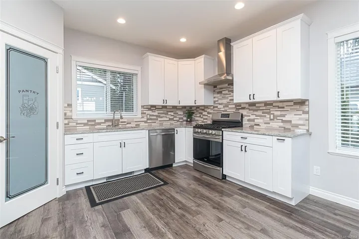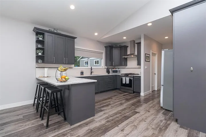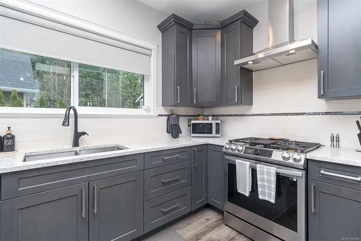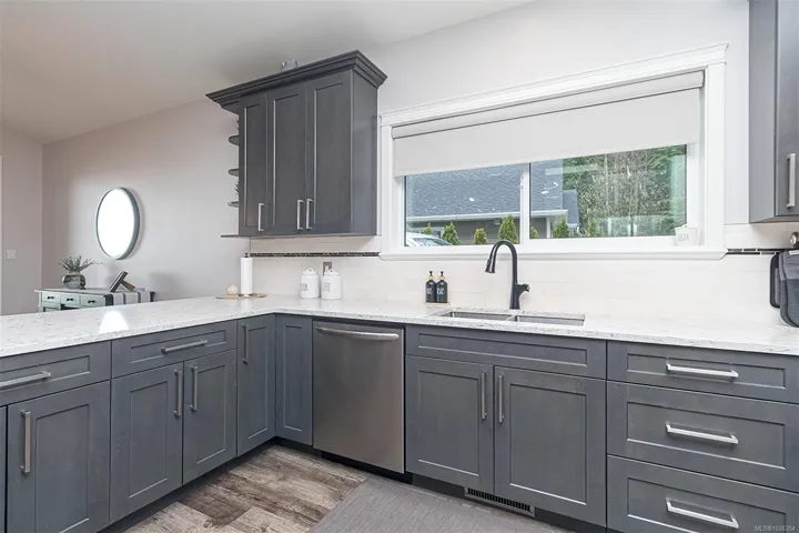 New Price! Sitting on over a rustic flat usable acre located on the Victoria side of Sooke. This beautiful classy Waterfront Estate with walk on waterfront ideal for kayaking, canoeing, or fishing off your front lawn. 2022 yr built, 3+ bed 2 bath 2000+Sqft custom rancher with open floorplan & unobstructed Ocean views, smartly done flooring throughout, gourmet style kitchen steps into the open dining area, facing the view, it is beside massive living room with gas fireplace, the master has smartly done planked ceiling finishes, walk in closet & ensuite, 2 other beds are good sized & there is a bonus den/media or office set up, the complete class starts immediately as you drive onto the property that has full privacy from the road, you see the wrap around driveway, you instantly see the large Rancher beside that you see the 2 bed 1 bath 1000sqft sqft Guest Cottage. + Bonus 1200sqft shop with 12ft ceilings. low maintenance manicured yard,lawns w/irrigation system.