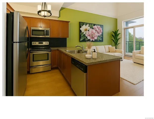 Imagine having your own large private rooftop patio to enjoy the summer nights! This bright and airy two-story condo offers 1 bedroom, 2 bathrooms and 790 sq ft of stylish living, plus an incredible 520 sq ft private rooftop patio, your own outdoor retreat in the city. The open concept main floor features soaring 18’ ceilings and oversized windows, creating a warm and inviting atmosphere. The kitchen is thoughtfully designed with stainless steel appliances, granite countertops and rich wood cabinetry, flowing seamlessly into the living area where you can relax by the cozy fireplace. Upstairs, the loft-style primary bedroom offers a peaceful escape with ample storage and a private 4-piece ensuite. Step outside to your expansive rooftop patio—perfect for morning coffee, sunset dinners, or entertaining friends under the stars. All of this just steps from Langford’s best restaurants, cafés, shopping, parks, trails and transit. Urban convenience meets relaxed West Coast living.