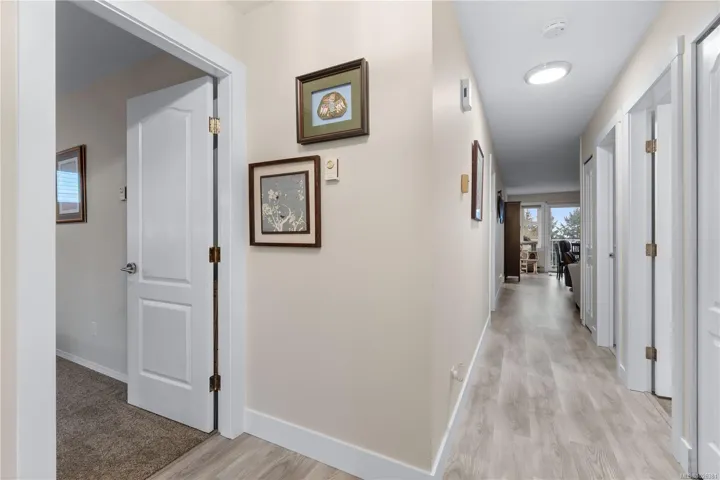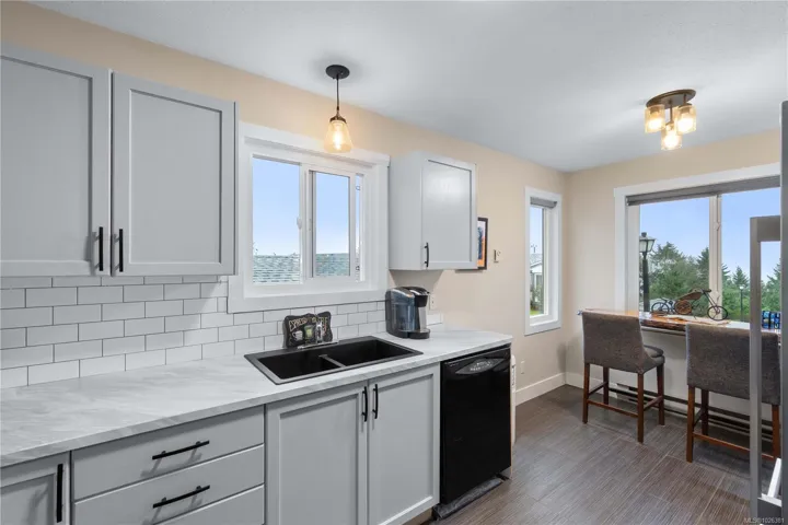 Updated 2 bed, 2 bath main-level town home with views. This stair free residence has been tastefully renovated with contemporary colours, modern finishes, and thoughtful design throughout.The bright and spacious main living area showcases lovely ocean views, while the large windows fill the home with natural light, enhancing the open-concept layout. The inviting living room features a stylish electric fireplace, adding warmth and ambience year-round.The updated kitchen offers ample cabinetry and workspace, perfect for both daily living and entertaining. The generously sized primary bedroom includes a 3pce ensuite bathroom, while the second bedroom is ideal for guests, hobbies, or a home office. A second 4pce bath adds convenience and flexibility. Additional highlights include in-suite laundry, storage, and a covered carport. Ideal home for those seeking a relaxed, low maintenance lifestyle close to the ocean and nearby amenities. Size approx verify if impt.
