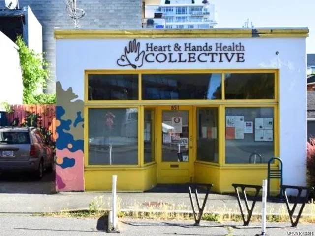 Well-located single-storey commercial building offering approximately 1,000 sq. ft. of flexible space suitable for office, medical, wellness, or service-based uses. High-visibility location with convenient access to Quadra, Pandora, and Blanshard Streets. The property is currently vacant, allowing for immediate occupancy or tenant improvements. In addition to owner-occupier potential, the property is designated for higher density under the Official Community Plan (4.5:1 FSR), providing future redevelopment or land assembly opportunity. Purchasers are advised to verify all redevelopment potential with the City of Victoria.