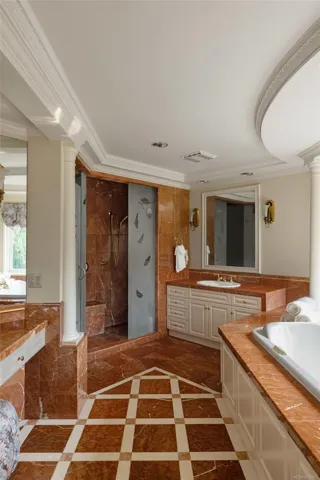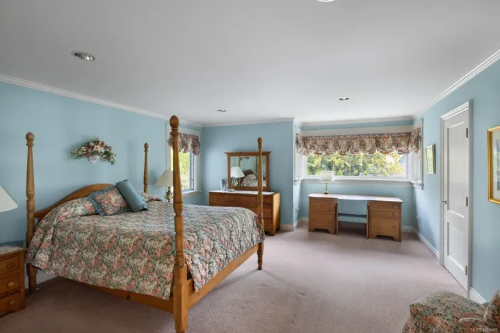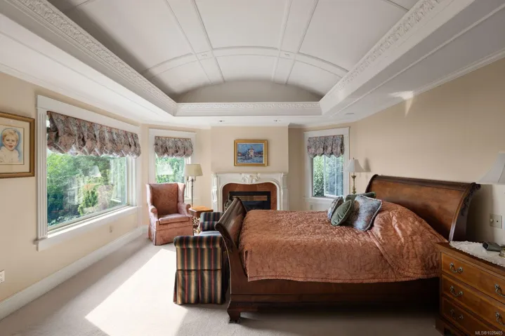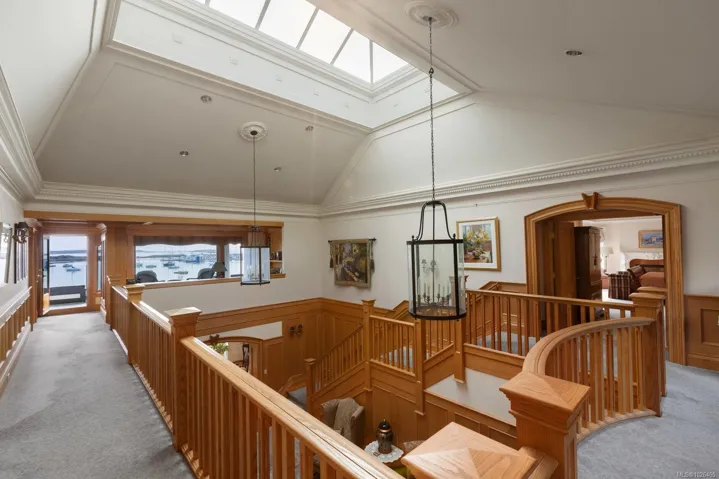 With commanding presence, exquisite craftsmanship & breathtaking ocean views, this Oak Bay Estate blends dramatic coastal beauty with refined living on a gated 0.55-acre lot. A grand entrance opens to a soaring 24-ft vaulted foyer w/ skylit sitting area & fireplace. Throughout the home, rich millwork in warm wood & crisp white, along with coffered ceilings, adds elegance to every space. The upper level features a luxurious primary retreat w/ fireplace, arched ceilings & 6-piece ensuite. A study opens to a balcony w/ sweeping ocean views, while 2 additional bedrooms w/ ensuites and WIC offer comfort & privacy. The lower level is designed for leisure, including a dance studio, wine cellar, hobby room, rec room w/ wet bar & bed & bath. Outdoors, sun-drenched patios overlook a tranquil pond & beautifully manicured gardens. A staggered 3-car garage provides ample space, making this exceptional estate a rare opportunity to own a distinguished home on Oak Bay’s coveted coastline.
