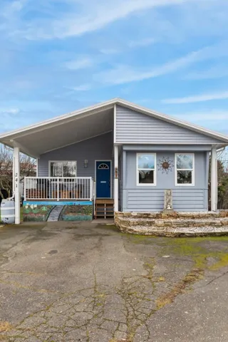 Welcome to the desirable Silver Park, now Alderlea Estates (under new ownership of Compass Communities) who may cooperate with banks for mortgages!! This spacious lot hosts a well kept 1 bed+ / 1 bath home with washer/dryer featuring open concept kitchen/dining area with up-dated large windows & lofted living room addition. Excellent quality metal roof installed in 2024. Throughout the rest of the home, another loft area could act as 2nd bedroom & extra storage area. Complete with heat pump, large closet/office, bonus indoor workshop/hobby room closed off from the rest of the home with ample lighting & outlets. Established fruit trees including cherry, peach, 4 varieties of apple, blueberry bushes, raised garden boxes & the quality shed in the backyard includes ventilation, fan, lighting & electrical. This home also features ample parking & a covered deck on the front to enjoy the evening sunsets. All measurements are approximate- Buyer should verify if important.