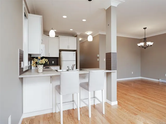 Gorgeous, impeccably maintained two-level home offering 3 bedrooms & 3 bathrooms in a central, walkable location. Built in 2009, this picture-perfect residence features nearly 1,700 sq.ft. of quality finishing, including beautiful hardwood floors, fresh carpet, & designer paint throughout. The welcoming entryway provides convenient access to the single garage & 2 piece powder. The open-concept living room showcases an over-height ceiling & a cozy gas fireplace. A bright white shaker-style kitchen w/an eating bar flows seamlessly into the in-line formal dining area. Sliding doors lead to an entertainment-sized covered deck overlooking the fully fenced, tastefully landscaped backyard. Upstairs, you’ll find three spacious bedrooms plus a versatile loft ideal for a home office or den. The primary suite includes a WIC, full ensuite, and its own private, sunny deck. Separate laundry room & a full crawlspace offer excellent storage options. This home truly has it all. Don’t miss your chance!