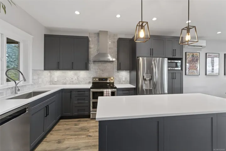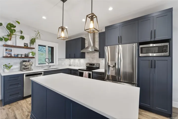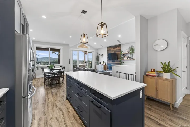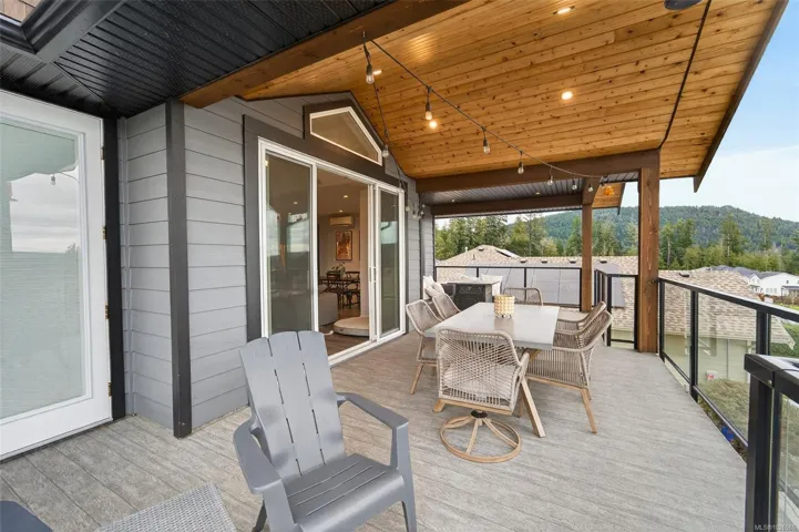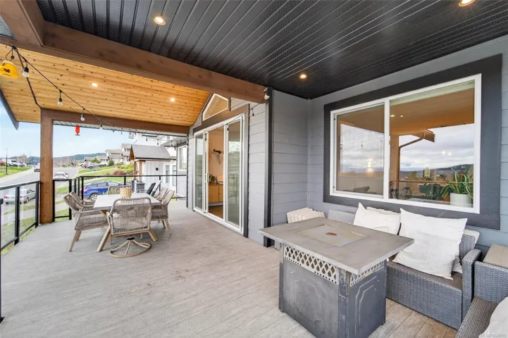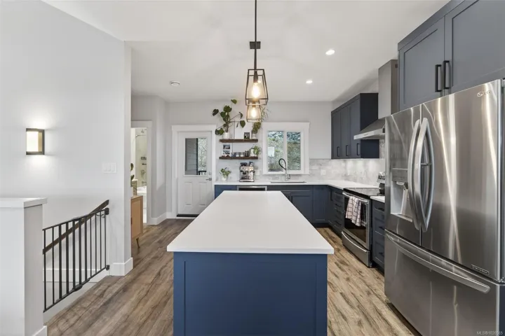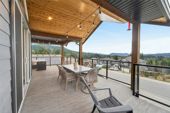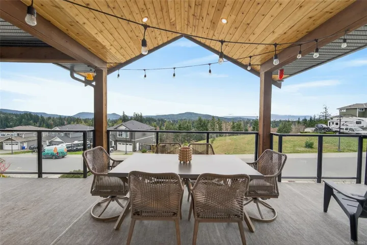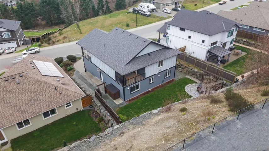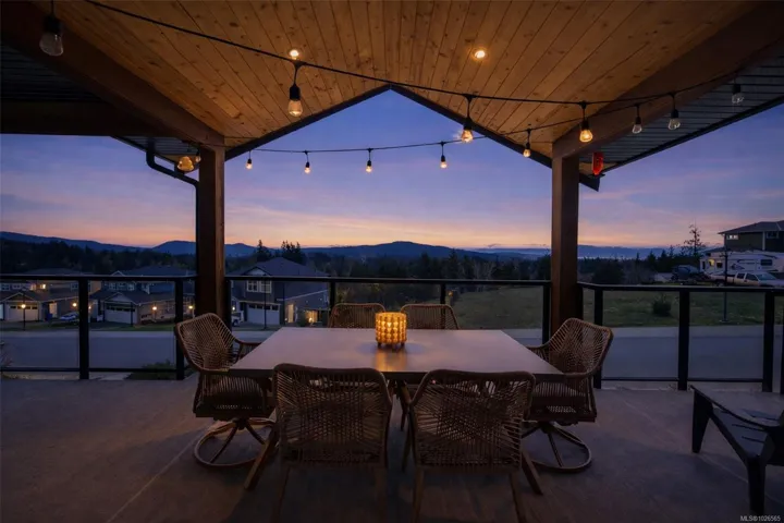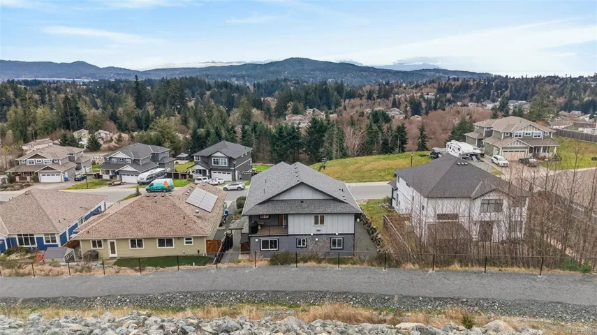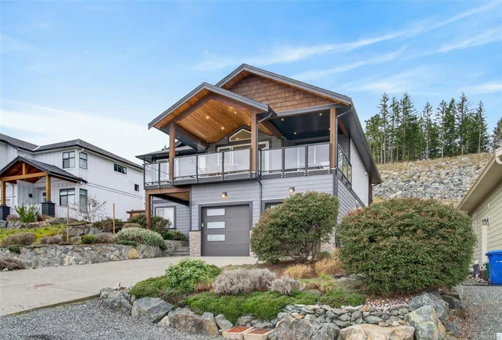 Welcome to this immaculately maintained custom home offering 180° panoramic ocean views from the large covered south-facing deck. Built in 2019, this beautiful 4-bedroom, 3-bathroom home impresses from the moment you arrive with its low-maintenance landscaped front yard and double over-height garage.Inside, the bright and open layout features vaulted ceilings in the living room, flowing seamlessly to the outdoor deck—perfect for enjoying the view. All upstairs bedrooms include walk-in closets for excellent storage.