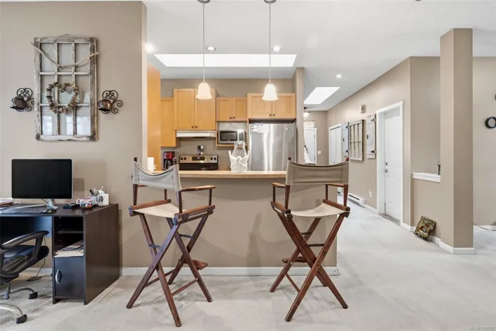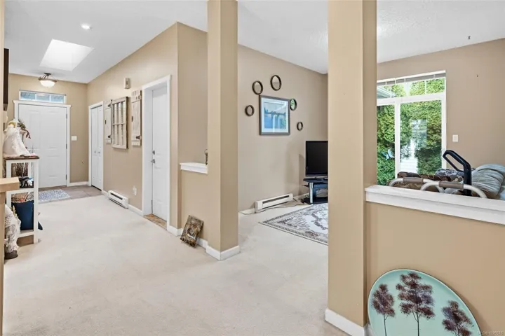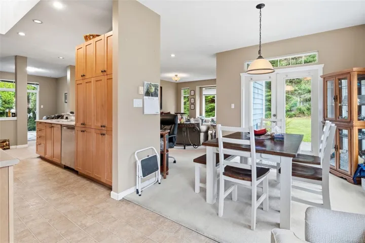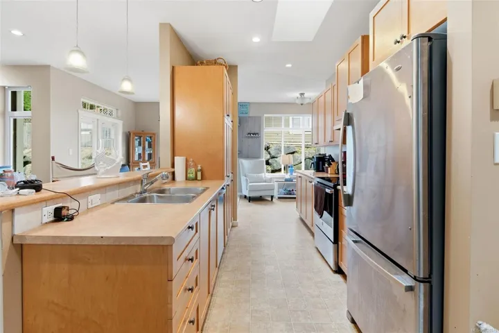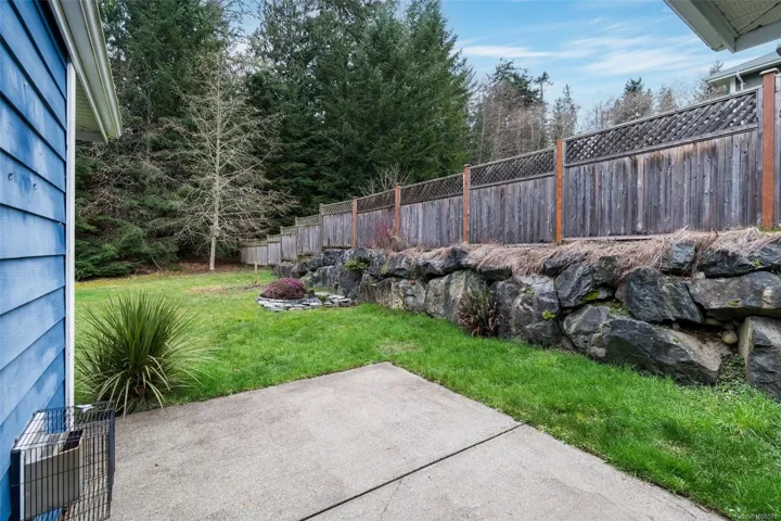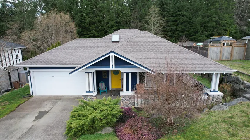 NEW PRICE! One-owner, 1468 sqft Qualicum plan 2 bed plus den rancher on nearly quarter-acre lot, backing on to the mature trees and rushing of Demamiel Creek in Sooke’s ever-popular Sunriver Estates. New roof, recent hot water tank and appliances, the home is in great overall condition, but leaves room for you to put your own personal touches on it. Great location with trails at your doorstep including the new Little River crossing, SEAPARC rec centre (pool/fitness/arena), Sooke Flats campground, Sooke River, and more just steps from your door. Enter into the bright skylight foyer. Huge open-plan living/dining/kitchen. Gas fireplace in the living room, eating bar in the kitchen. Large primary bedroom at the rear overlooking the sunny south-facing yard and mature trees. Ensuite bath with separate soaker tub and shower, and walk in closet. Second bedroom on other side of the house for privacy, and a 3 piece bath. Double garage, and patios on each side of the house to enjoy the outdoors.