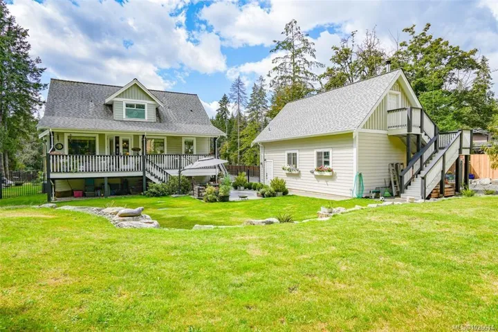 A picturesque row of spring cherry trees welcomes you home to this private, fully fenced 1.19-acre country retreat. Enjoy your own orchard, blueberry patch, and established garden—perfect for growing fresh produce. Deep front and back porches invite year-round relaxation. Inside, the well-maintained 4-bed, 4-bath home offers a bright kitchen and open-concept living space overlooking the beautiful acreage-ideal for family life and entertaining. The fully finished lower level features a spa-inspired retreat with sauna and steam shower, plus excellent suite potential. An overheight garage with plumbing, heat, and an activity room adds versatility, while ample RV parking provides space for all your toys. A fully serviced she shed with heat, water, and electricity offers the perfect escape for hobbies, guests, or quiet time. A rare blend of privacy,comfort and flexibility.