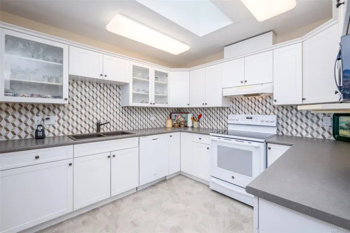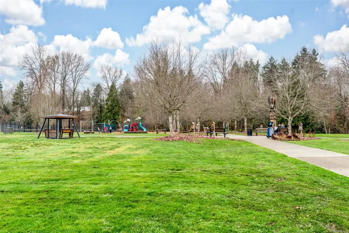 Welcome to “On the Park,” a well-kept 55+ community steps from Centennial Park. This bright & welcoming top-floor condo offers 1,139 sq ft with 2 bedrooms and 2 full bathrooms, including a spacious primary bedroom w/its own ensuite. The southern exposure brings in beautiful natural light, enhanced by vaulted ceilings & a cozy gas fireplace making the living area feel warm & open. The kitchen has been tastefully updated, & most flooring has been refreshed. A large deck off the living area, also accessible from the primary bedroom, provides a sunny place to relax. The home includes in-suite laundry & all appliances. Residents enjoy a storage locker, bike/scooter storage, and exercise/multipurpose rooms. Pets are welcome with 2 cats or 1 small dog (up to 6.8 kg). The location is hard to beat right next to Centennial Park & an easy, level walk to shops, cafés, & services in downtown Duncan. A comfortable top-floor home in a friendly, walkable community.