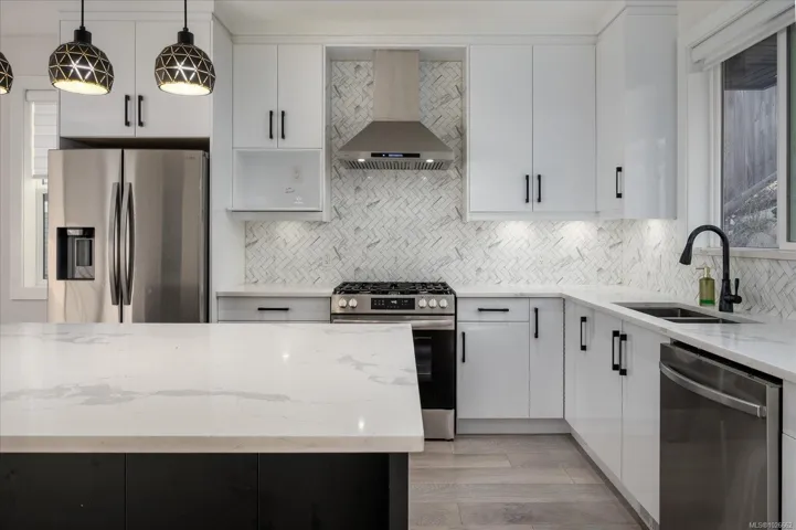 Beautiful custom-built 6 bedroom, 4 bathroom home on a quiet no-thru street offering stunning views of Mt. Benson & bright southern exposure. Built in March 2022, this modern residence features 2-bedroom legal suite with separate entrance & its own BC Hydro meter—ideal as a mortgage helper or investment. Enjoy the open-concept layout with large windows, quartz countertops, & a cozy gas fireplace. The spacious front patio with glass patio doors invites plenty of natural light, while the low-maintenance yard allows you to spend more time enjoying life. A park is located directly in front of the house, creating the perfect setting for families with small children to play safely. Located in a desirable new development close to malls, parks, schools, & other amenities, this home perfectly combines style, convenience & comfort. A rare opportunity for families or investors seeking a bright, contemporary home in an excellent location with mountain views & all the essentials just minutes away.