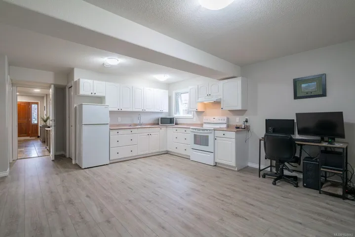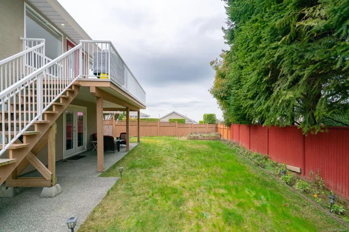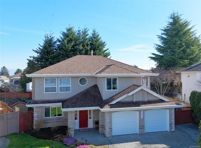 Beautifully maintained, North Nanaimo family home with Ocean view! 6 Bedrooms, 3 Bathrooms including a lovely 2 bedroom suite. This property is located in a quiet, well established North end neighbourhood, within walking distance to Mcgirr and Dover schools, shopping, transit, beaches and parks. Enter on the lower level you are greeted by a curved staircase and welcoming warmth. The lower level offers a bedroom or office, mudroom/storage, and access to the freshly updated 2 bedroom suite. New vinyl flooring, paint, & bathroom vanity in the suite, open concept kitchen and two large bedrooms. The main level boasts tons of bright living space, updated carpets, new gas fireplace 2025. The kitchen is so fresh with quartz countertops, cabinetry, backsplash & lighting done in 2024. The family room and step out deck offer the best ocean view in the house! Further features to note: RV parking with gate and paved pad, irrigation, gardens, gas furnace, new garage doors and openers 2025.