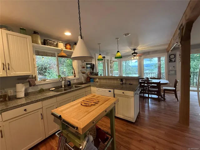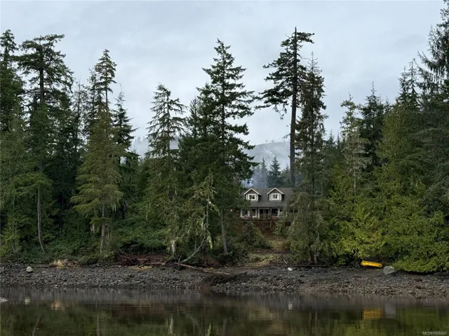 Boat-access only, this private waterfront retreat in Sherberg Bay offers the ultimate West Coast escape in the coastal community of Quatsino. The fully furnished 4-bedroom, 1.5-bath home was professionally built in 2008 and offers 1,344 sq ft of comfortable living space. An open-concept kitchen, dining, and living area flows onto a covered wraparound deck, positioned to take in all views. The home is nestled among the trees on the waterfront portion of the property, offering privacy and a true connection to nature. Cozy up with the luxury of on gird power with a wood stove, and serviced by drilled well, septic system. The property spans approximately 4.25 acres, including 328 feet of walk-on waterfront with potential for a private wharf (buyer to verify), plus an additional 3.25 acres across the road. Zoning permits an additional small cabin. Enjoy fishing, crabbing, prawning, kayaking, and abundant wildlife right at your doorstep. Access is by boat from Coal Harbour or Port Alice