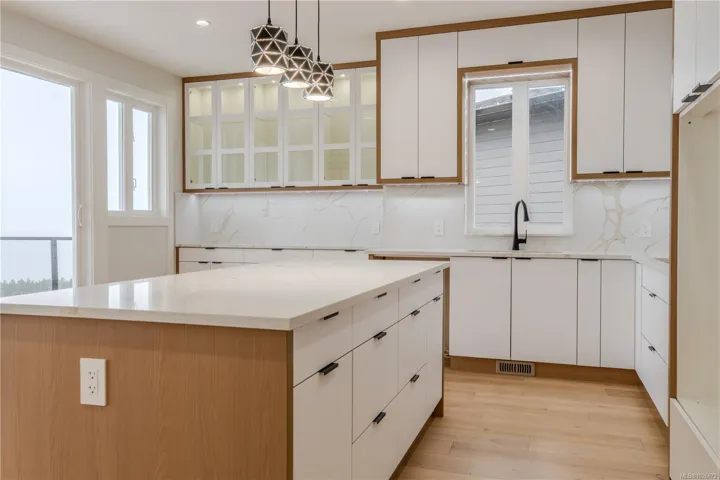 legal Suite… Panoramic Ocean Views! Wake up every morning to sweeping vistas of coastal mountain ranges and charming small islands. This home was thoughtfully designed for a low-maintenance, lock-and-go lifestyle. The main level features a bright, open-concept kitchen with a spacious dining area, flowing seamlessly into the ocean-view living room with a cozy fireplace—perfect for relaxed evenings at home. The primary suite offers stunning ocean views, a walk-in closet, and a private ensuite. A second bedroom provides flexibility for guests or a home office. Completing the main floor is a double-car garage. The middle level continues to impress with a theatre room or potential home gym, three additional bedrooms, two full bathrooms, and a generous living area. The lower level offers a fully self-contained one-bedroom suite with a separate entrance—ideal for generating revenue or accommodating extended family. The suite includes a kitchen, family room, bedroom, four-piece bathroom.