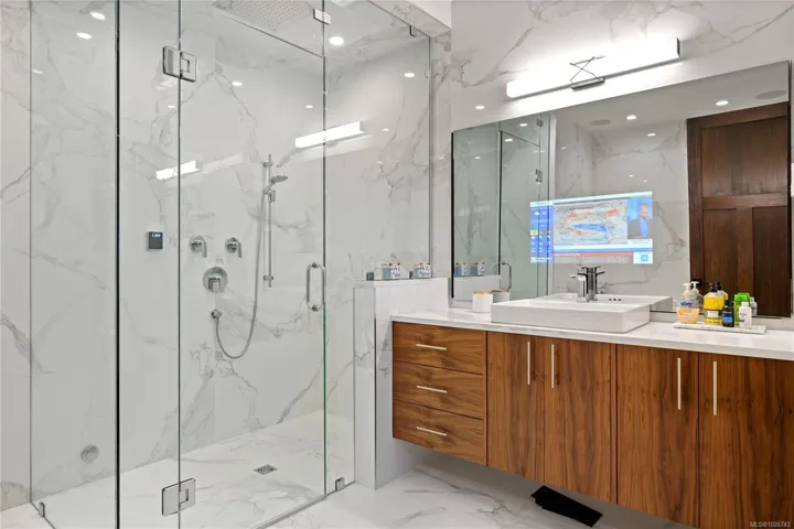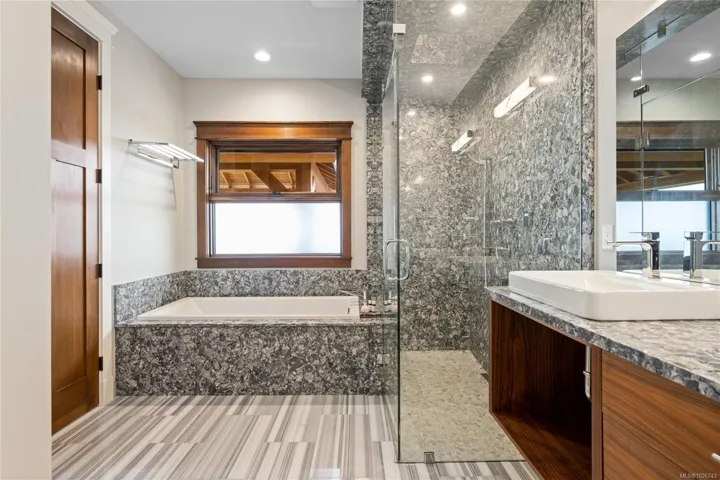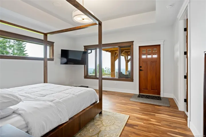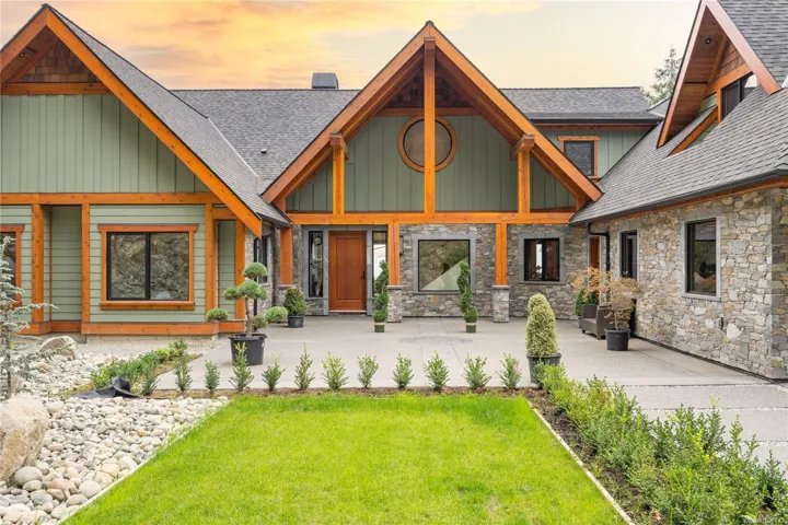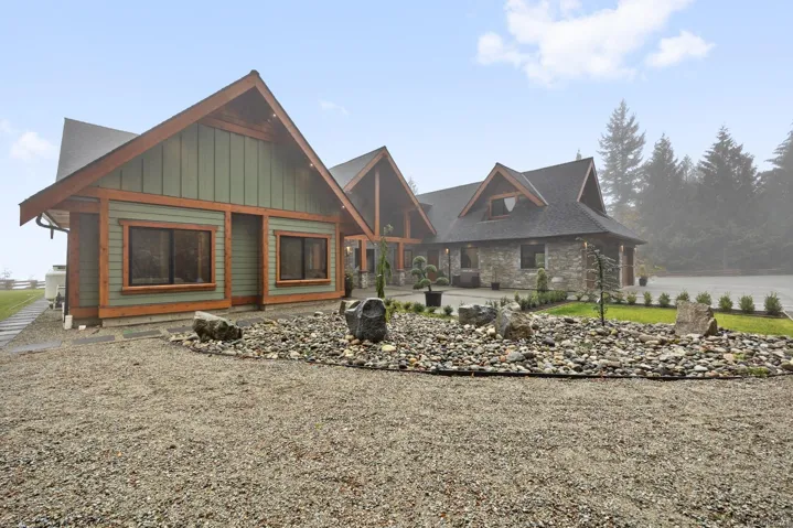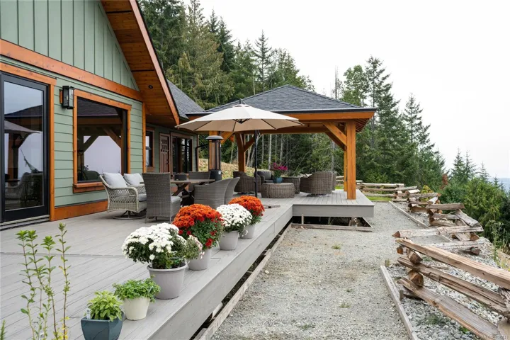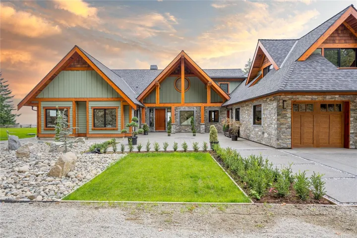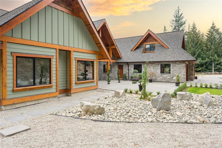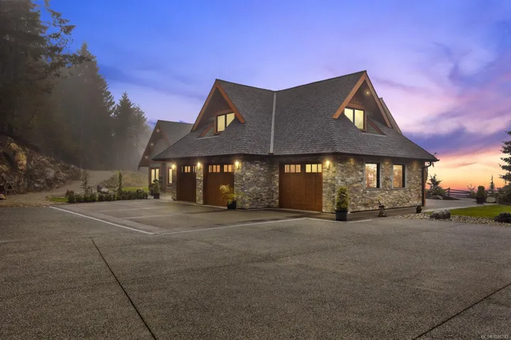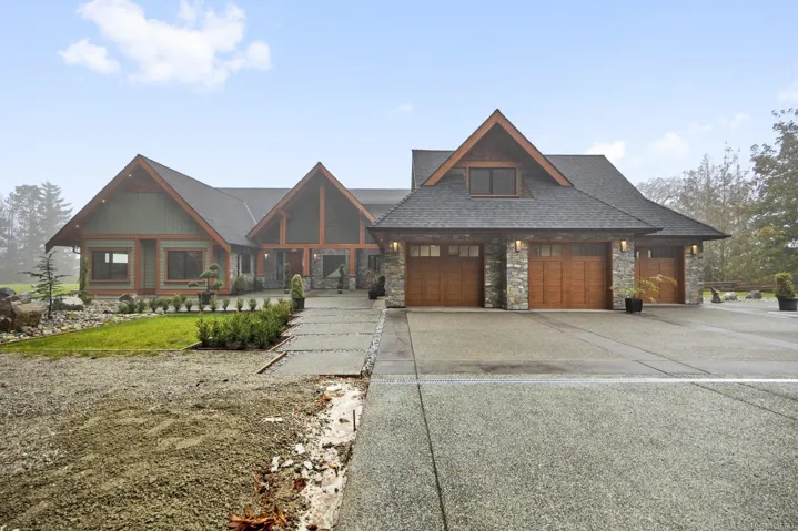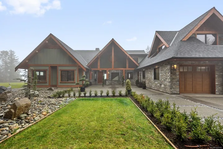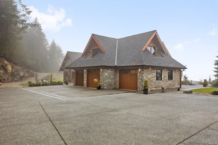 Stunning custom built home sits on 4.9 acres overlooking the Georgia Straight and Qualicum area. Commissioned by a local developer, this 4 bed, 4 bath home stretches over 4,133 fin sq/ft. As you enter through the power gates down past the 3 car garage with cedar doors and trim, through the 8ft fir doors and into the stunning living room with 11ft ceilings. Approx. 30 tons of stone was used throughout the house ranging from the marble fireplace, oversized quartz island, and marble features in the main floor bathrooms and entryway inlay. A chef’s dream kitchen will impress designed by MidIsland Cabinets highlighted by Wolf appliances and Walnut on white cabinets. The versatile floor plan allows for the master on main alongside 2 extra bedrooms. The ensuite and main-floor baths offer marble features, in-floor radiant heat, steam showers, and smart mirrors. 5 ACRE LOT NEXT DOOR IS ALSO AVAILABLE AND HAS 3 SERVICED RV PADS AND SPACE TO CREATE A HELIPAD.
