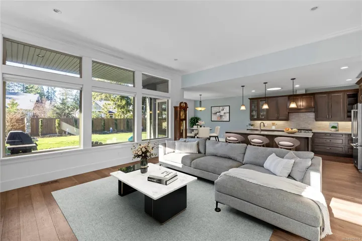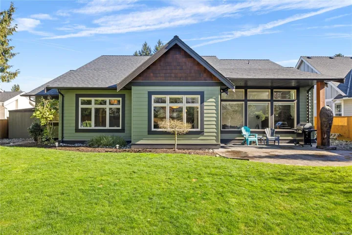 Eaglecrest Rancher at its finest! This exceptional 2000+ sqft rancher offers a thoughtfully designed open layout that stands out for its comfort & functionality. Situated on a peaceful street & backing onto protected green space, this executive home is a short stroll to one of the community’s most loved sandy beaches. Custom built by the highly regarded KS Bate Construction, the home reflects superior quality & is crafted with refined finishes & millwork. The inviting great room connects effortlessly to a private backyard & covered, stamped concrete patio, equipped with a gas hookup for a future fire pit. The spacious kitchen is complete with a generous island & pantry, while the great room has a dramatic floor-to-ceiling stacked stone fireplace & custom cabinets. The primary suite offers a peaceful escape with luxurious ensuite & spacious walk-in closet. The fully fenced southwest backyard provides plenty of natural light, privacy & space while the front yard has gorgeous curb appeal.