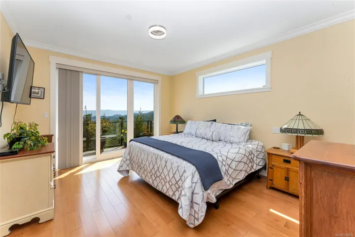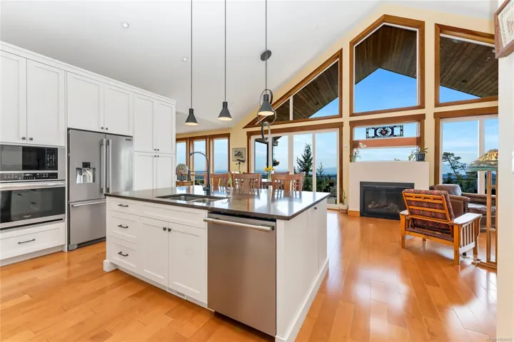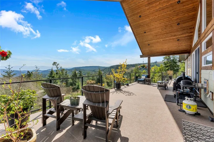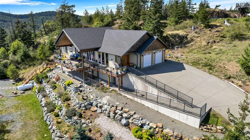 Like a rancher! A 5,000 sq ft custom home (3,000 Sq Ft finished) built by Bob Thomson perched high on top of the ridge. Breathtaking views. Natural light fills 2,000 sq ft of living space on the main – 1 level living – with a 500 sq ft deck is perfect for entertaining – or relaxing – against a backdrop of coastal mountain vistas. Inside, the great room boasts a soaring 17-ft vaulted ceiling, and the chef’s-dream kitchen features solid wood cabinetry, high-end gas burners, separate butlers pantry & stainless steel appliances. The primary bedroom on the main floor has a huge walk-in closet & spa-like ensuite – ideal for the retired couple who wants privacy with lots of room for family to stay and visit. The double garage with EV charger offers ample room for 2 cars with more room on the oversized driveway. Separate RV parking. Hidden hot tub. Massive workshop. Concern about the drive to town? Don’t worry – you have a wine cellar! A must-see view that will leave you in awe. Move in now!