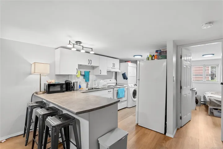 Solidly built and beautifully maintained, this classic 1950s home with additional accommodation offers exceptional flexibility in a prime Cedar Hill setting. Set on a large lot with abundant parking, a covered carport, and detached garage for storage or hobbies, the home features a spacious 2-bedroom main level plus a third bedroom and separate laundry below. The self-contained 2-bedroom in-law suite offers excellent revenue potential or comfortable multigenerational living. Ideally located across from Doncaster Elementary and on a direct bus route, just moments to Cedar Hill Golf Course, shopping, UVic, and Camosun College. Pride of ownership shines with updates including roof (2022), windows (2016), kitchen (2012), and new lower flooring (2026). Set back from the road with Mount Tolmie views, this is a fantastic opportunity in desirable Saanich.