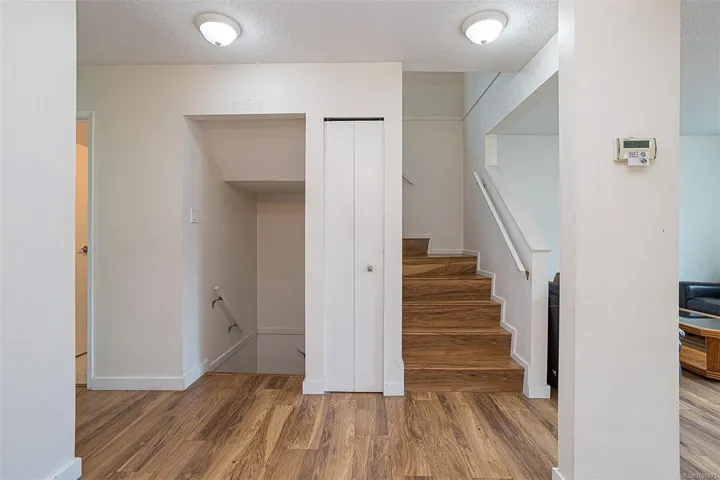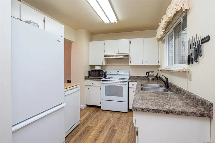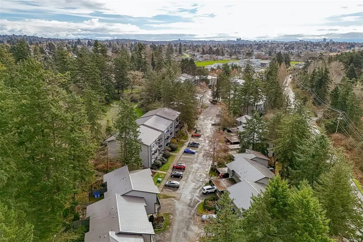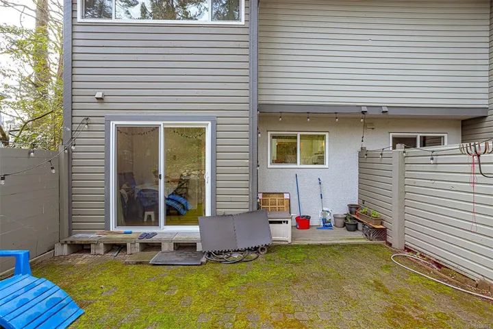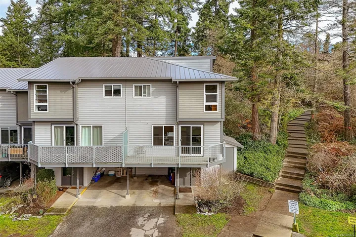 FAMILY-FRIENDLY END-UNIT TOWNHOME – Bright and spacious 1,700+ sq.ft. 4-bed, 2-bath home offering incredible value and room to grow. The sun-filled main level faces south and features an open layout with generous living and dining areas that easily accommodate large furniture, plus a large deck perfect for soaking up sunshine. The eat-in kitchen opens to a private patio with garden beds leading to a peaceful, park-like setting. Upstairs offers 3 bedrooms and a full bath, while the versatile lower level includes a large den or potential 4th bedroom. Step out to your private patio and garden beds backing onto peaceful green space. Kids will love the outdoor pool while you enjoy your park-like setting. The proactive strata have completed major updates, brand new metal roof & vinyl windows. Covered parking and storage included. Walk to schools, Tillicum Mall, Pearkes Rec Centre, parks, Galloping Goose & Colquitz trails. Pet- and rental-friendly strata. RARE FIND WON’T LAST—call now!