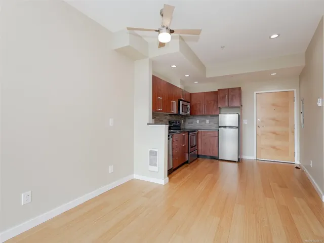 TOP FLOOR – One Bed / One Bath Condo at Latoria Walk in a Westcoast style 2011 Built Building above the Popular Red Barn Grocery Store. Centrally located in the Vibrant Westshore Community just 20 Minutes outside of Downtown Victoria, this Property is VACANT – available for immediate possession and features: Efficient Floor Plan, 9-foot ceiling, Private Balcony, 2 Pets welcome – no size restrictions, Great Room Concept Design, Pleasant Views over the Tree Lined Neighbourhood, S/U Parking, Storage Locker on the same floor, low strata fee of $330 p/mt inc. hot water. This Location is truly special with so much at your Door from Parks, Hiking Trails, Olympic View Golf Course and the nearby Royal Bay Beach Park and Ocean Front Walkway.