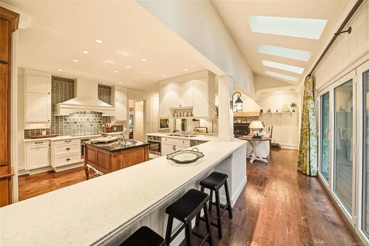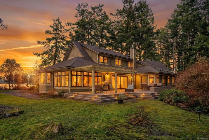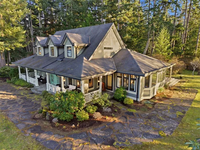 Enchanting Nanoose Bay Oceanfront Retreat! Resting on a peninsula between Wall Beach and NW Bay you’ll find this spectacular gated 4.83-acre property hosting a stunning 4131 sqft 4 Bed+Bonus Room/5 Bath Cape Cod–style home. The home showcases elegant finishes, stylish architecture, formal Living/Dining Rooms, skylights and large windows, a Bonus Room for guests, and 1200′ of oceanfront with views of Beachcomber, Georgia Strait, and Wall Beach. Wrap-around veranda leads to two-storey foyer. Living Room has elec FP; Dining Room features coffered ceiling and veranda access. Butler’s Pantry opens to a Chef’s Kitchen with island, skylights, and premium appls. Family Room with wood FP opens to lrg SW-facing deck. Main level also offers Study, Powder Room, Primary Suite with spa ensuite, Gallery Hall, and Dbl Garage. Upstairs: 3 Bed and 2 Baths. Separate staircase leads to Bonus Room with Kitchenette and Bath. Private acreage hosts bocce court with Rec Room. Visit our website for more info.