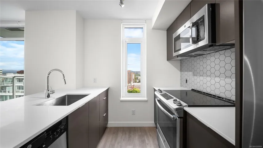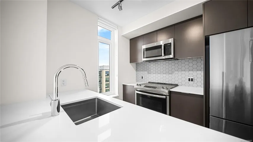 Downtown Living at Its Best! VIVID At The Yates delivers unbeatable value for both first-time buyers and savvy homeowners. Versatile Ownership Options: take advantage of just 5% down and the innovative 15–20% AHOP second mortgage program OR enjoy the freedom of a standard purchase without restrictions–Your choice! Perched on the 16th floor, Unit 1601 is a bright and spacious 2-bedroom, 2-bath home featuring a primary suite with walk-in closet and ensuite. Enjoy sleek modern finishes, stainless steel appliances, and the peace of mind of a 2-5-10 warranty—with GST already paid! From your windows, take in panoramic city and ocean views while enjoying the convenience of downtown at your doorstep. This steel-and concrete building provides inviting common spaces, outdoor areas, sweeping city and ocean views. Measurements are approx. Other units w/o AHOP restriction are available.