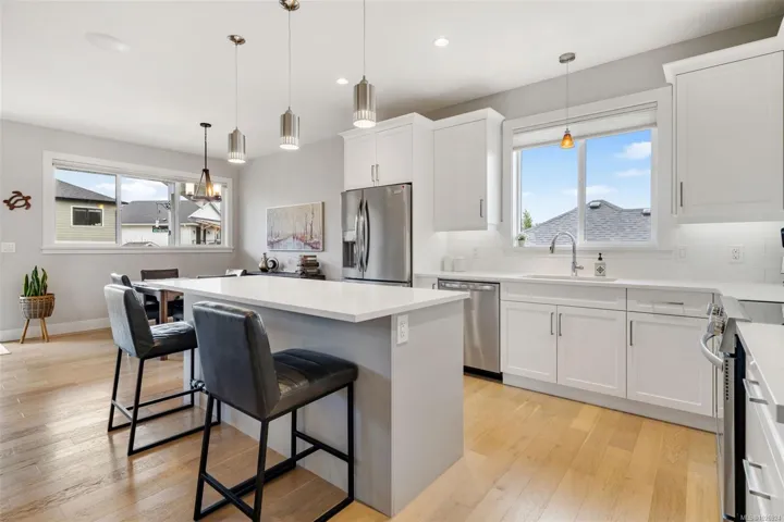 O/H SAT MAY 2 1-3PM! Located in West Ridge Trails close to all of Sooke’s Town Core amenities, this beautifully crafted 3BR + media room executive style home with 1BR suite makes the ideal family property! The main living area boasts a spacious & open floor plan w/ gleaming quartz counter tops & SS appl in kitchen, cozy gas fireplace w/ built in shelving in living area & plenty of space in the dedicated dining area for family dinners & gatherings w/ access to a massive partially covered 260sf deck. Down the hall you’ll find your primary bedroom w/ w/i closet & stunning 5 piece ensuite w/ free standing tub, 2 add’l great sized bdrms, lndry room & main bath. A media room down makes the perfect escape for teens & adults alike or incorporate it easily into the 1BR suite w/ 9’ ceilings, separate laundry, high end finishes & outdoor area for extra space & rental income! W/ plenty of living space, huge yard, ample parking & storage, this fantastic home is one to grow into for years to come!