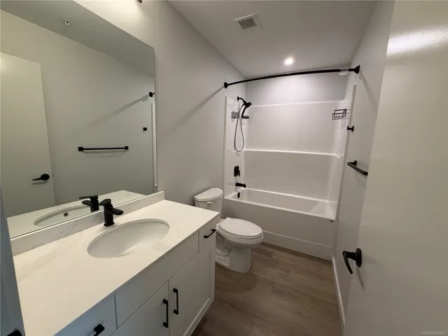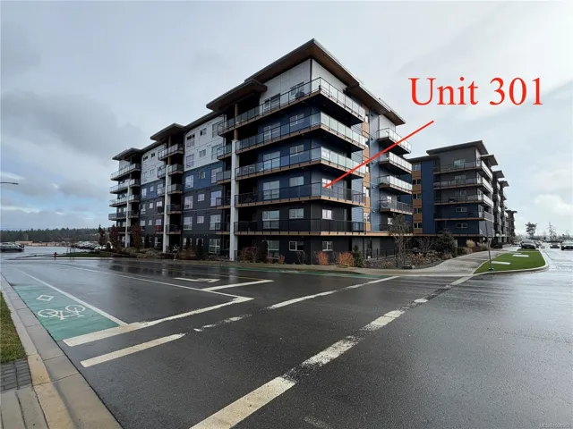 CORNER UNIT with a huge (385 sf) wrap-around balcony, perfect for year-around enjoyment. This is the gem of Sky Gate. All conveniences in this 4-year-old home include heat pump heating and cooling, luxury vinyl flooring, a perfectly appointed kitchen with soft-close cabinetry, premium stainless steel appliances and quartz countertops and an in-suite laundry room with storage. Each bedroom is thoughtfully placed in separate wings for maximum privacy. The primary suite includes a luxurious 3-piece ensuite, while the second bedroom has access to a stylish 4-piece washroom. This unit comes with one secure parking stall and an adjacent storage space. SkyGate amenities include a fitness centre, EV charging stations, a roof-top patio, a dog run, community gardens, a social lounge and bike storage. Nearby are restaurants, shopping and grocery stores as well parks and trails. Just 20 minutes to downtown Victoria.